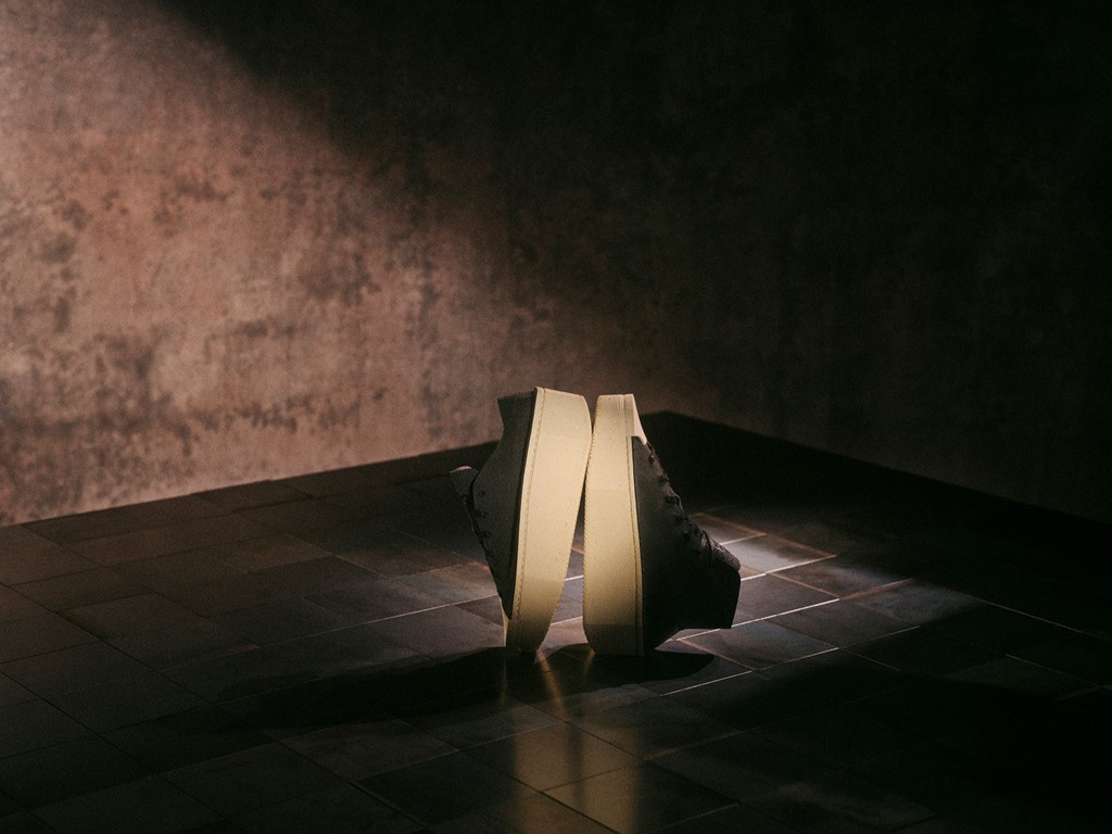 中底呈现出几何切割效果,拍摄的图片更是直接展示出这双鞋的特点:可以垂直站立!