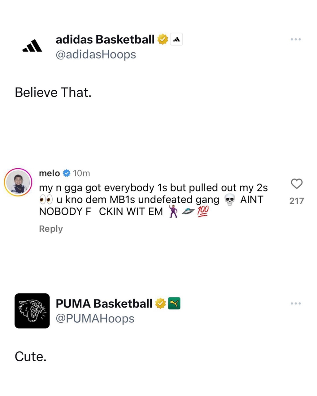 不过当时除了 Puma 旗下代言人 “三球” 拉梅洛·鲍尔小小回应了一波外,Nike 这边则选择沉默应对。