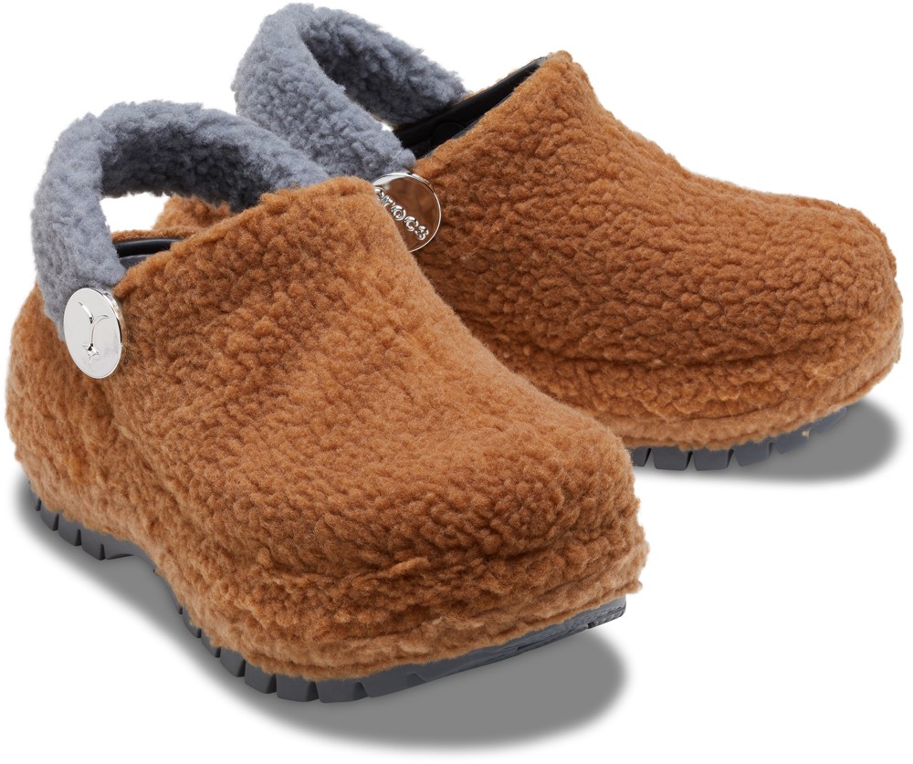Crocs 这两年把联名玩的风生水起,占据了无数潮人、明星的鞋柜。 最近,携手音乐艺术家兼 Crocs 全球品牌代言人 Lil Nas X 推出限定联名鞋款。 鞋型方面选择 Sherpa Mega Crush Clog 为蓝本,配色上分别以沙漠棕与雾霾蓝撞色呈现。 最大胆的当属材质运用,鞋面、后跟带覆盖毛绒面料,细节方面铆钉点缀有 Lil Nas X 个人标识。 这双有着出色的增高效果与辨识度的 Crocs 你给打几分? 目前已通过 Crocs 天猫旗舰店、线下店铺发售,定价为¥1099 元。