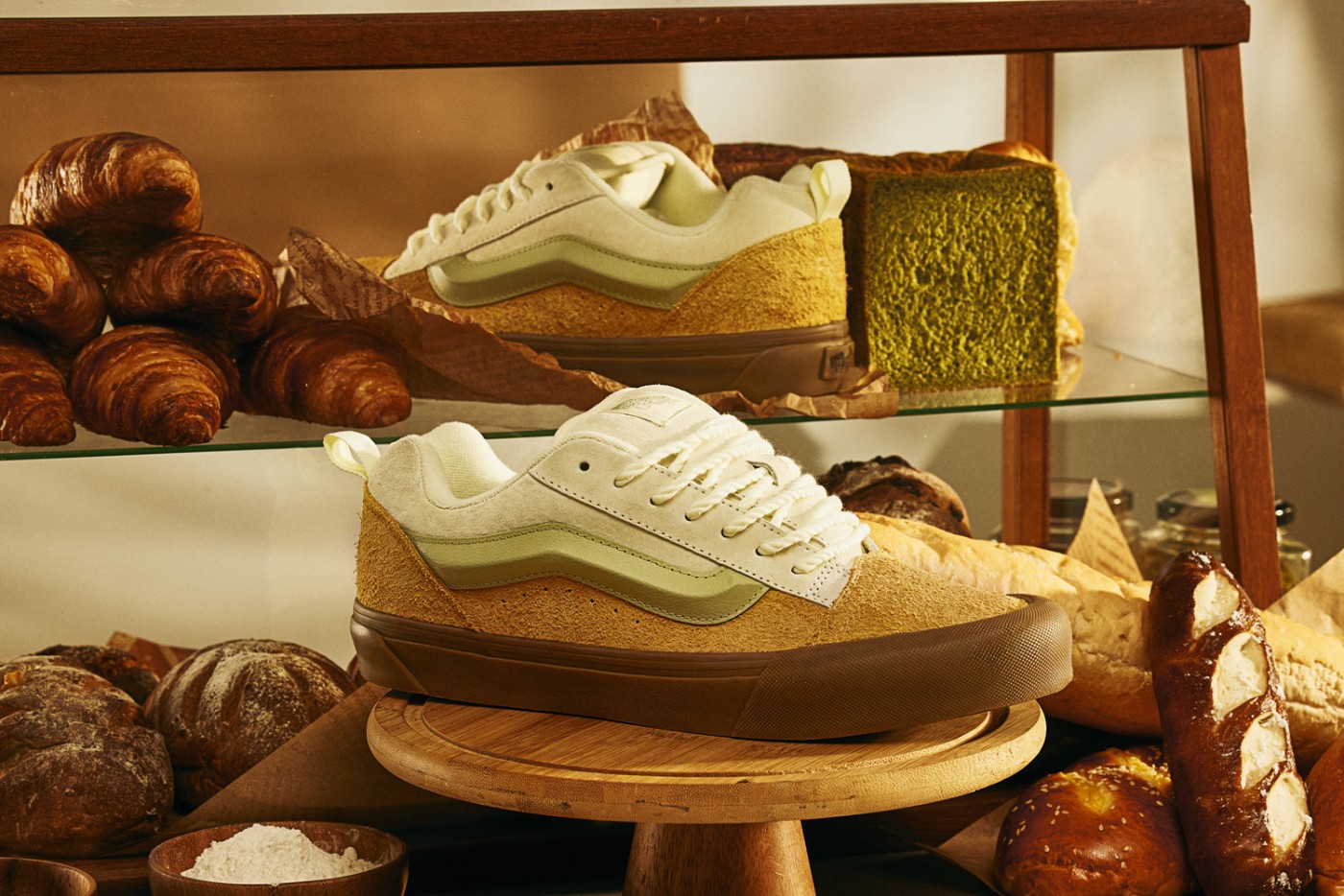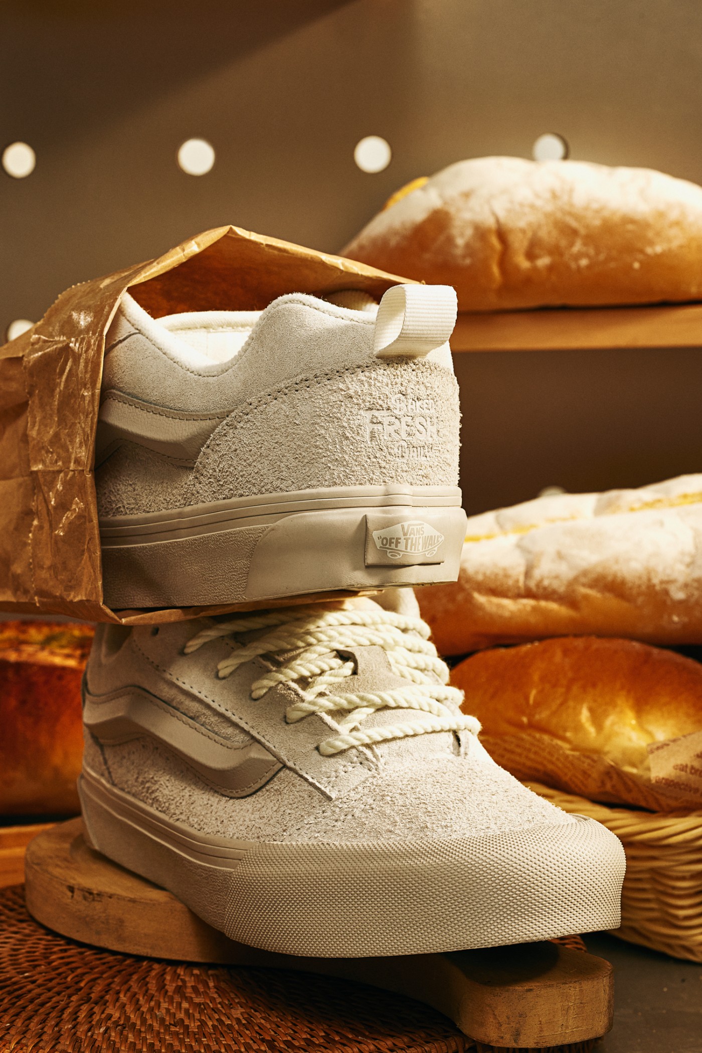 此次 Vans 选择以现烘面包为主题,造型十分复古简约,又散发着一股说不出的温暖感,非常适合在即将到来的圣诞节上脚。