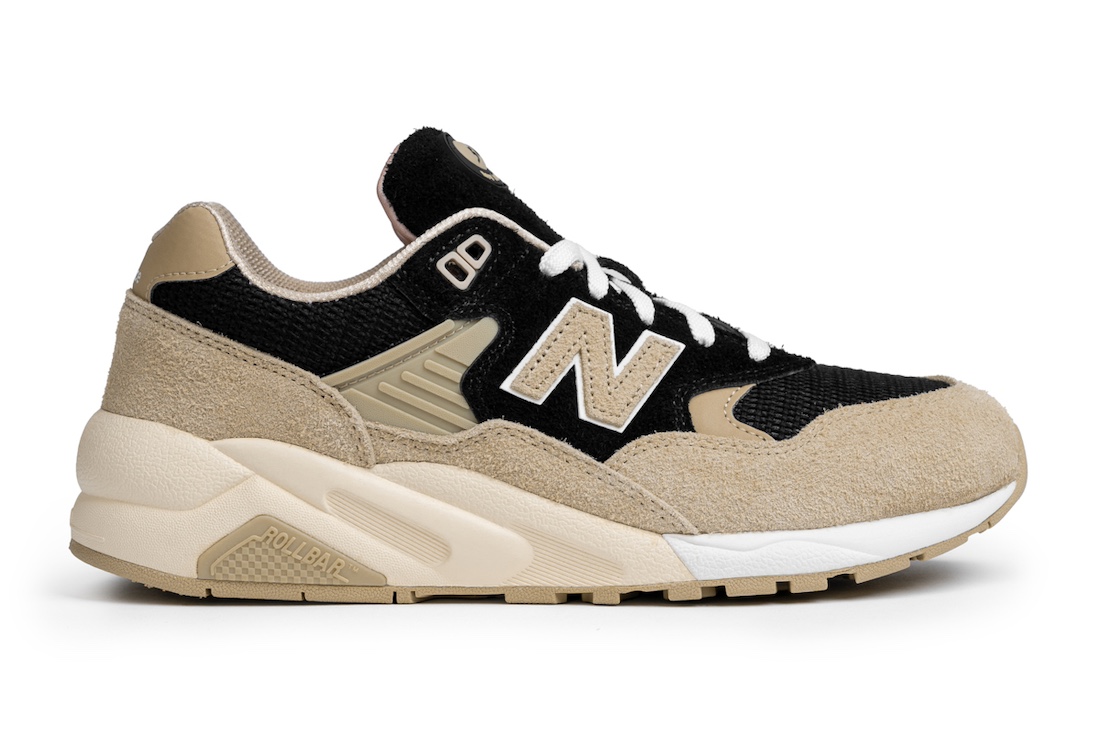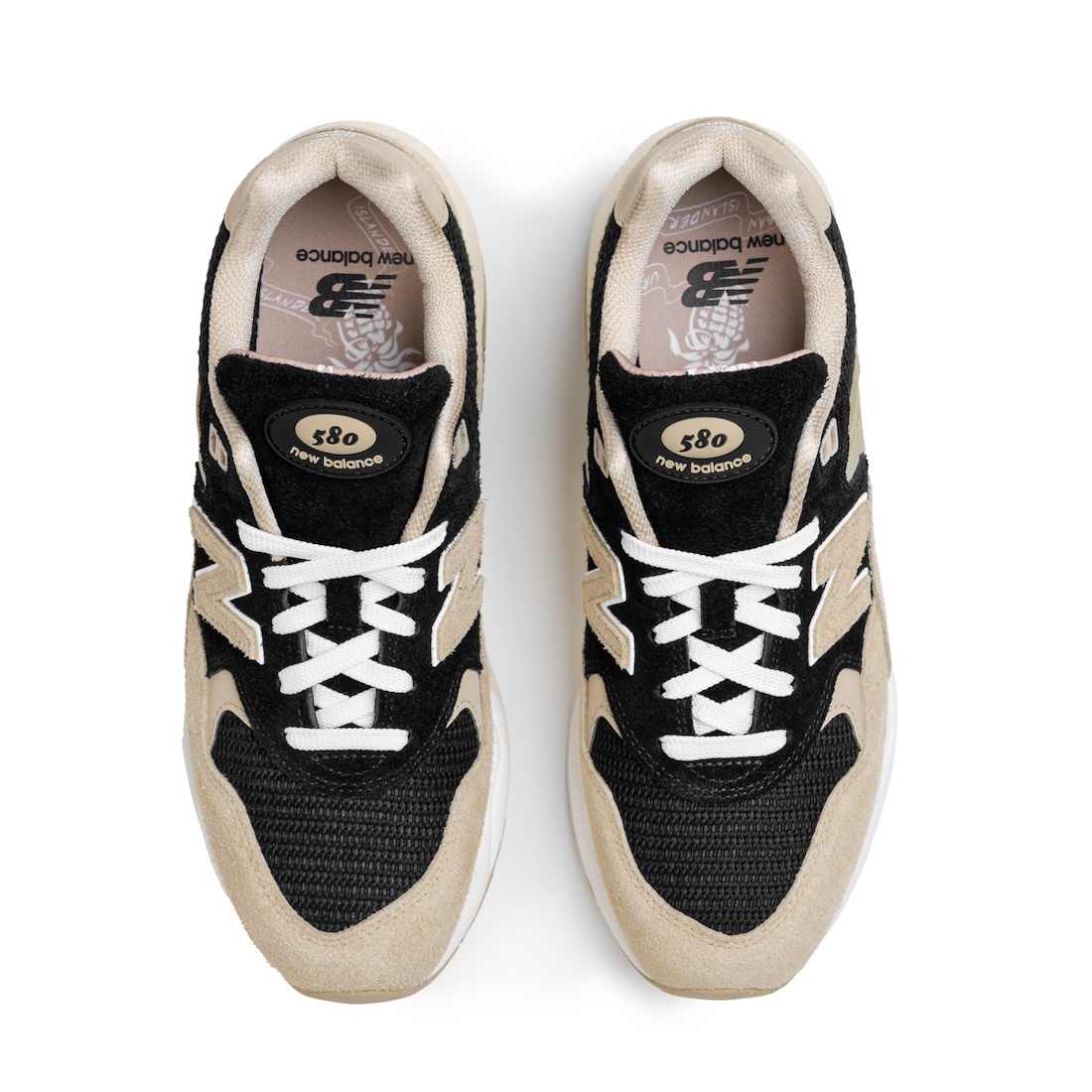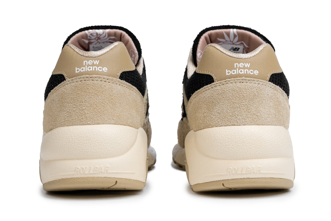 此次三方联名选择 New Balance 580 为蓝本进行创作,鞋身使用黑色和浅卡其色组成,视觉效果相当简约。