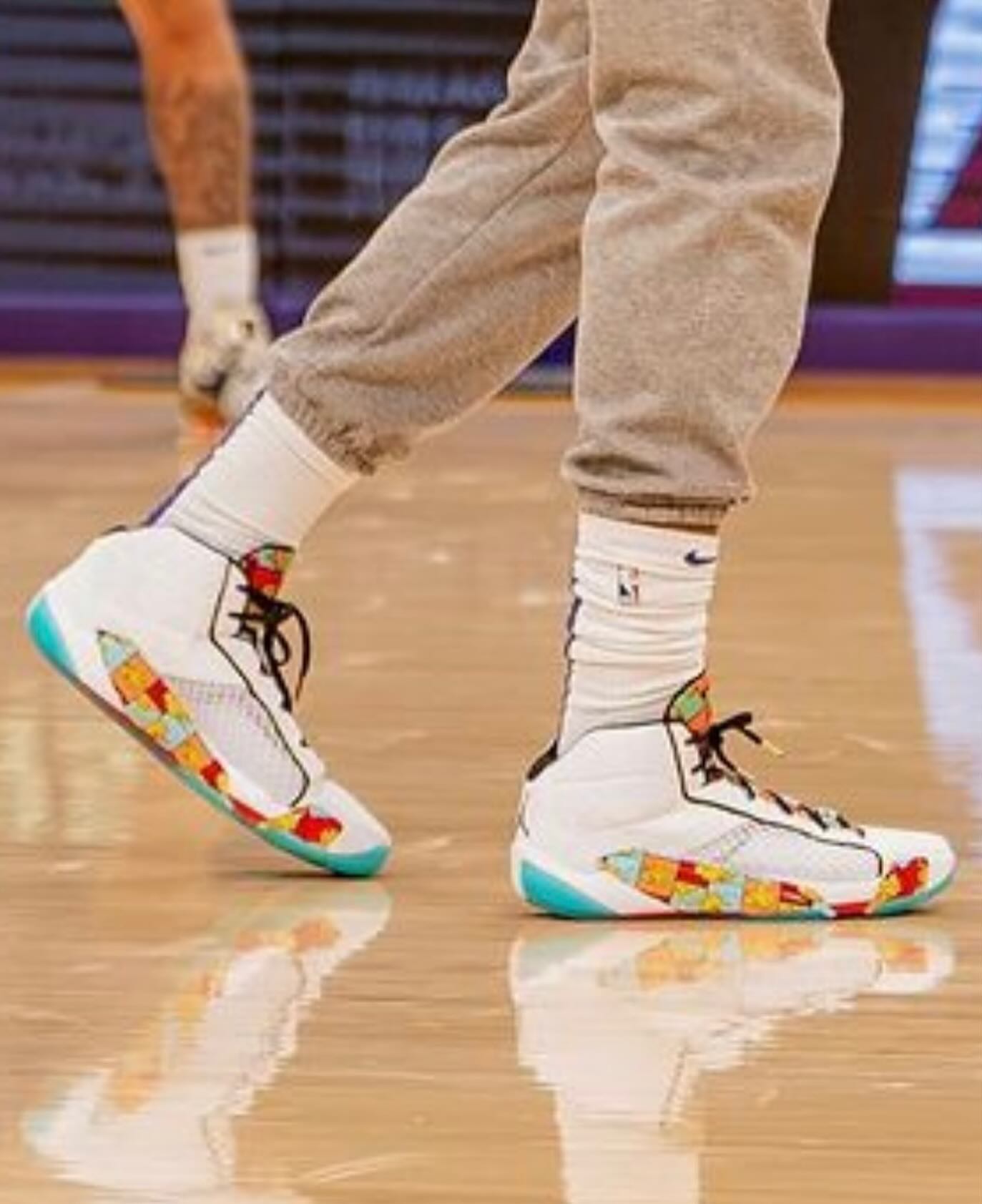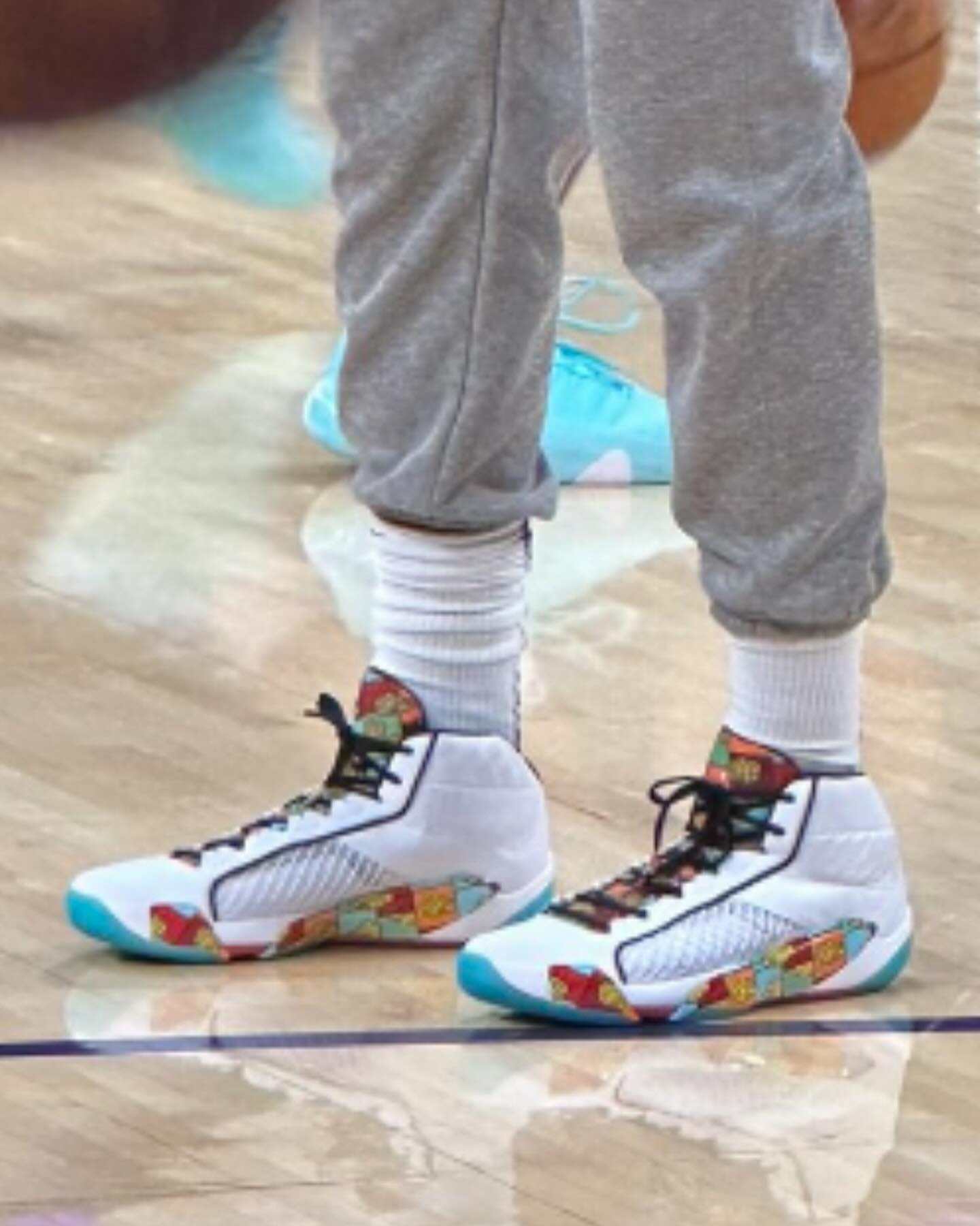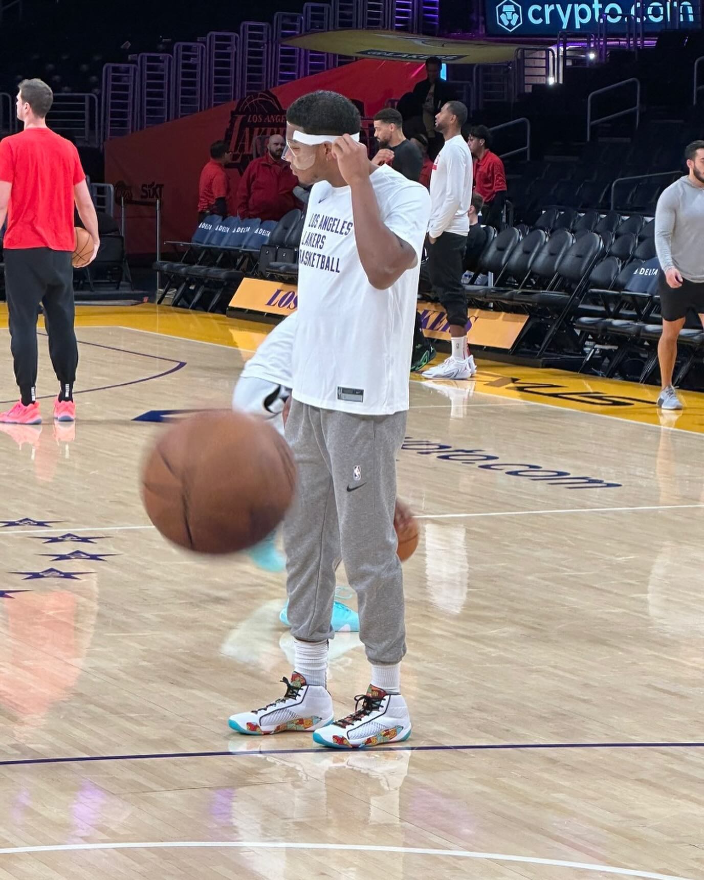 近日,在 NBA 常规赛赛前湖人球员八村塁上脚了全新配色的 Air Jordan 38!