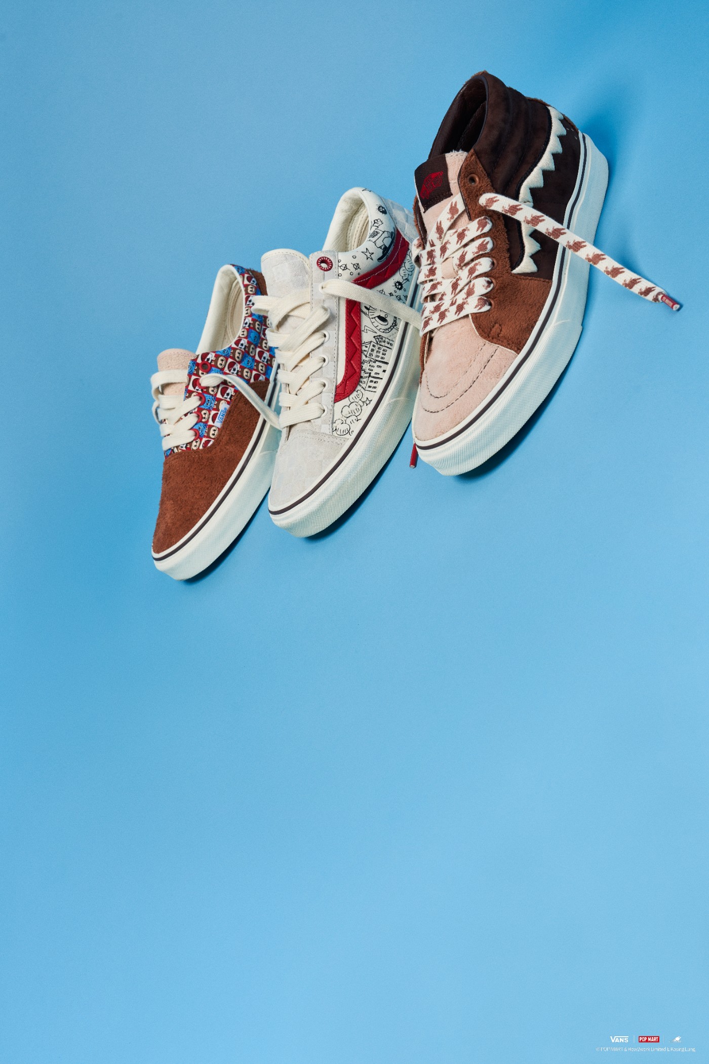 此次联名设计鞋款选用三双 Vans 经典鞋款 Style 36、Era 和 Sk8-Mid。