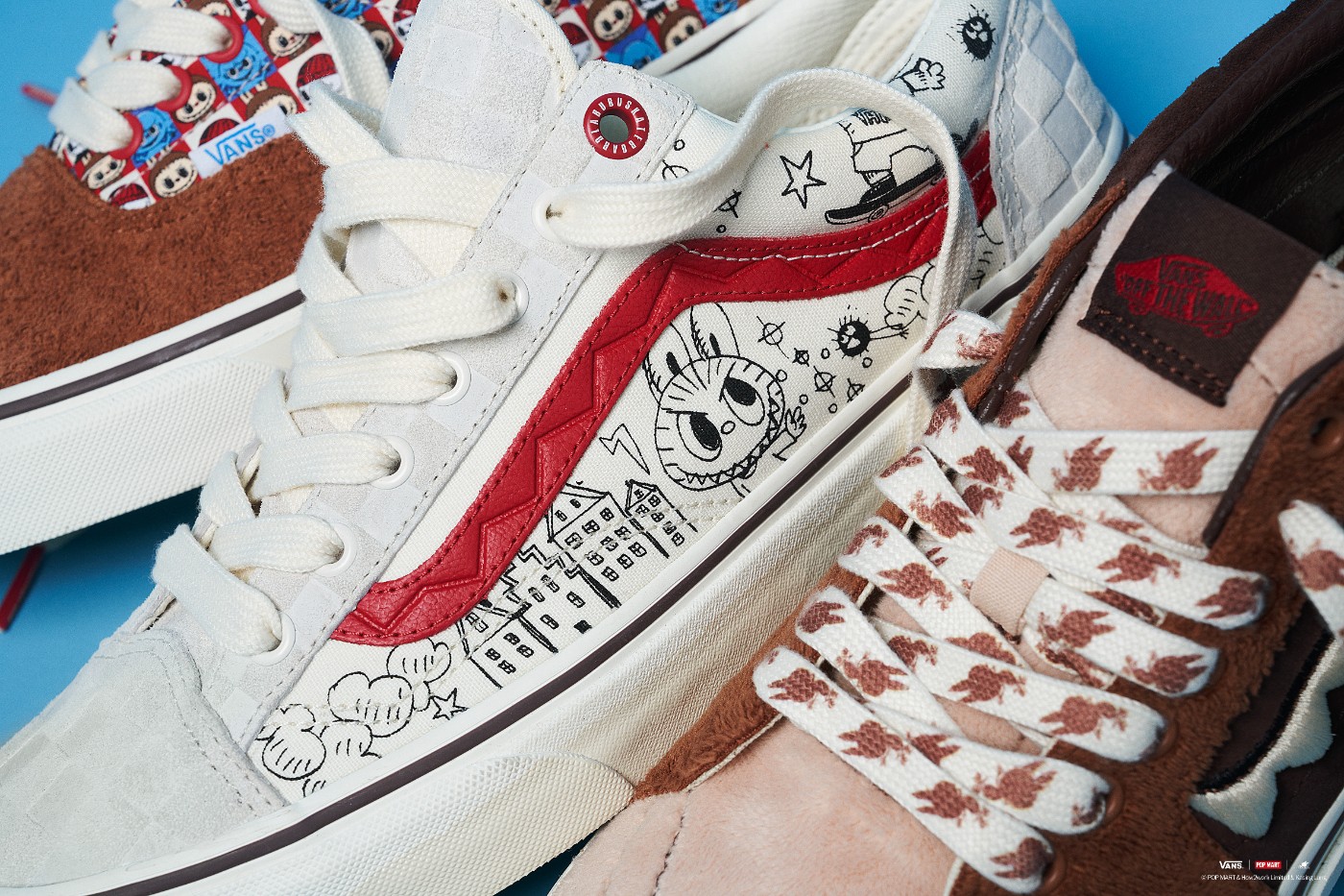 Era 鞋款同样采用棕色为主色调,并与鞋腰处饰以三款风格各异的 “LABUBU” 人物形象。