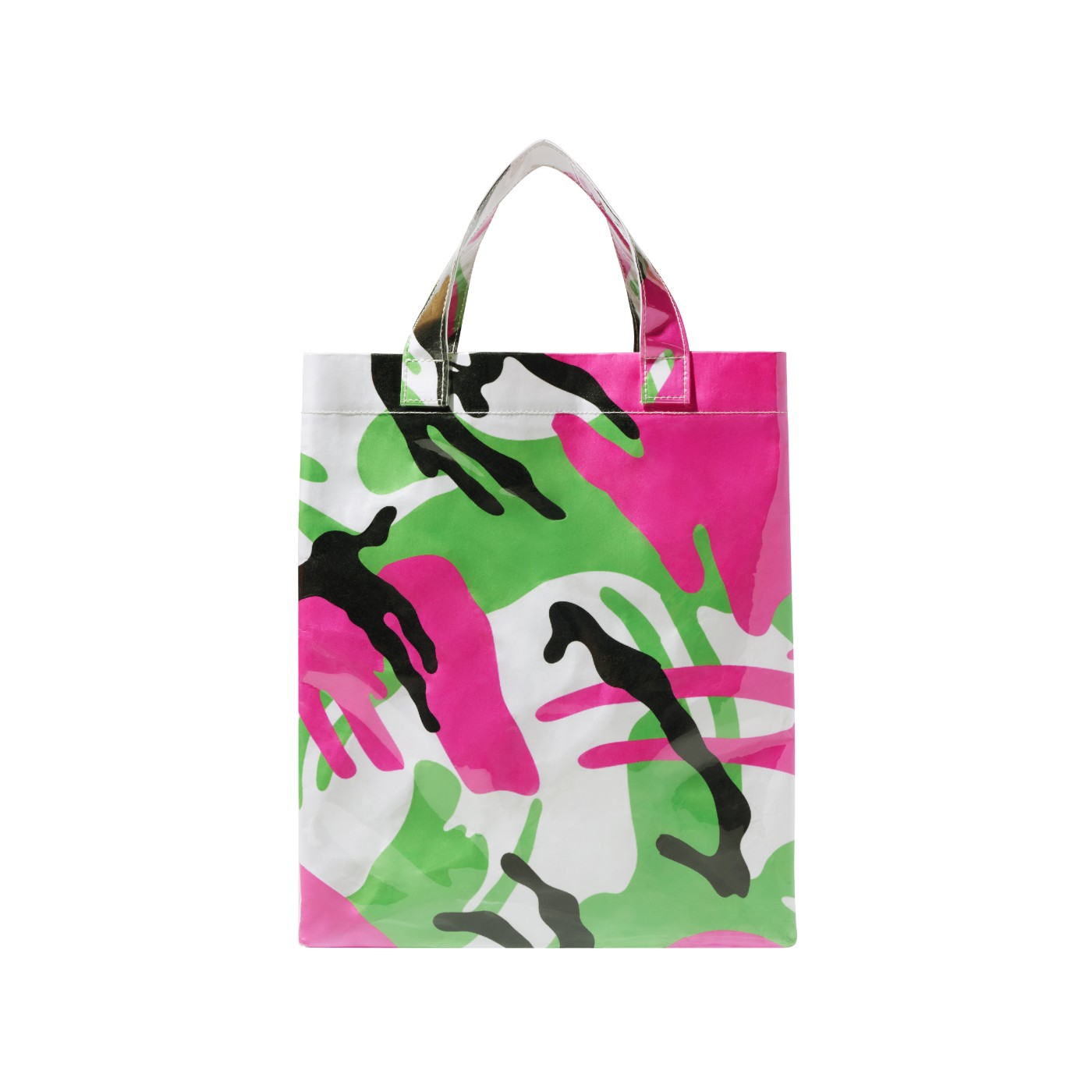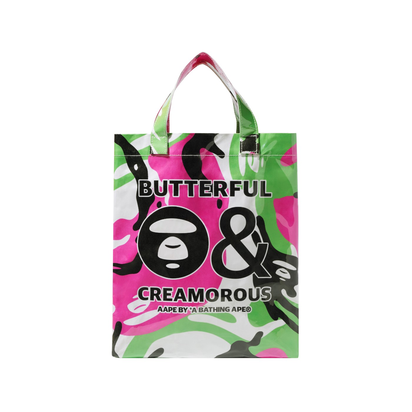 同时还推出了呼应 B&C 经典抱袋设计的 PVC 手提袋,轻巧精致的手拎包型兼具实用性与时尚感,搭载靓丽抢眼的迷彩外观。