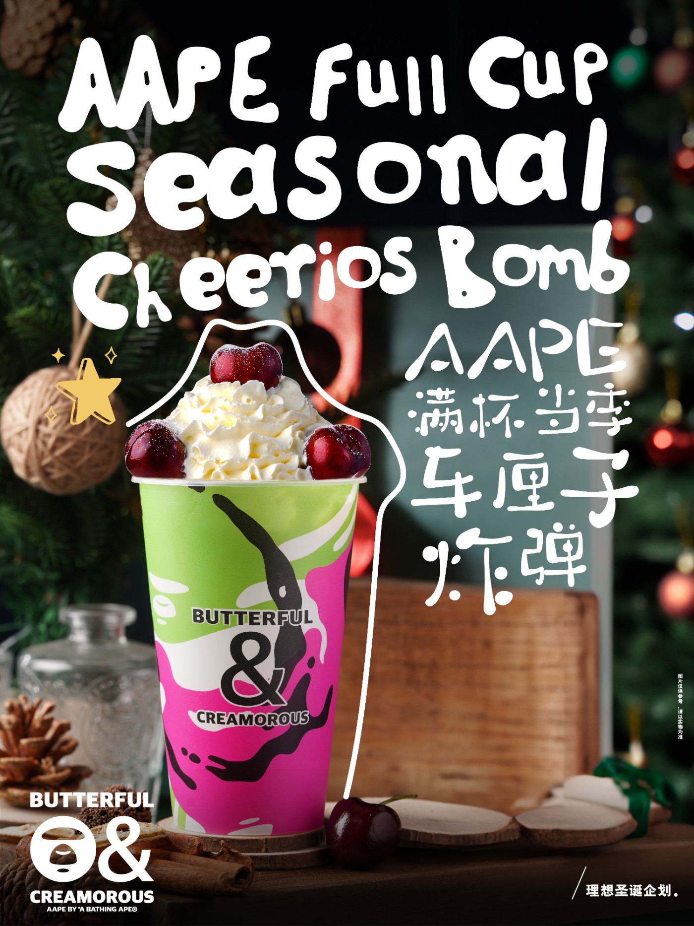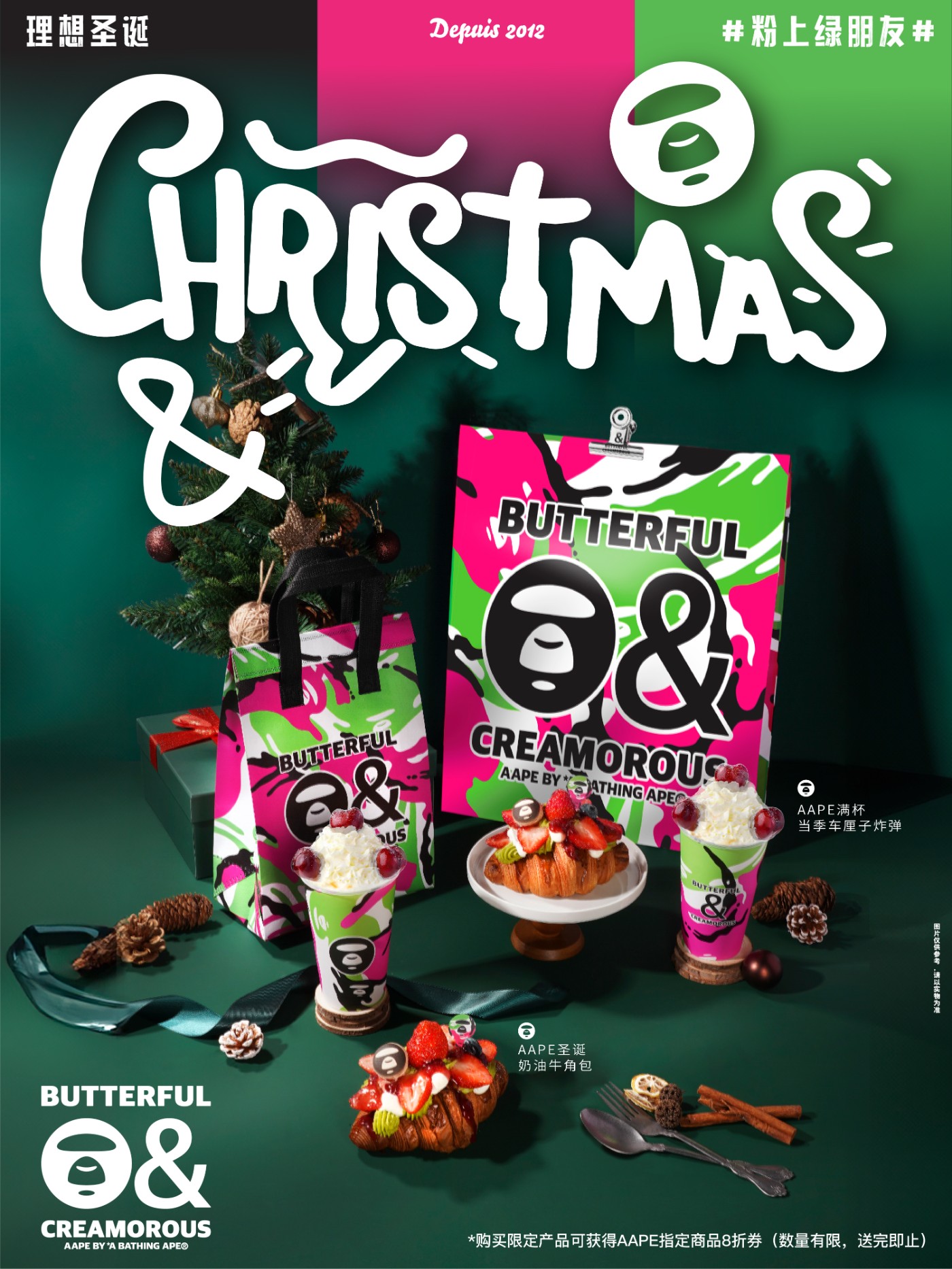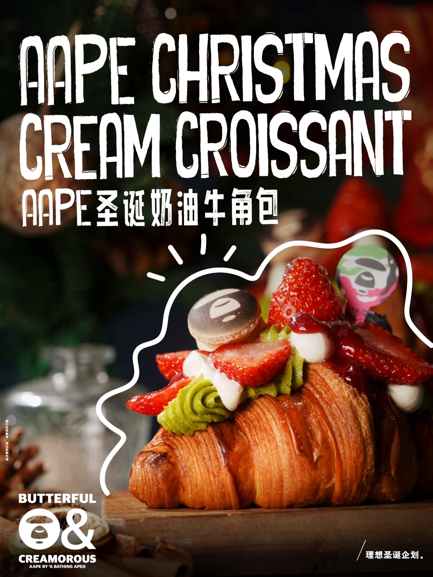 随着圣诞节的临近,AAPE 携手法式轻奢烘焙品牌 BUTTERFUL&CREAMOROUS 黄油与面包(简称 B&C)开启跨界合作。