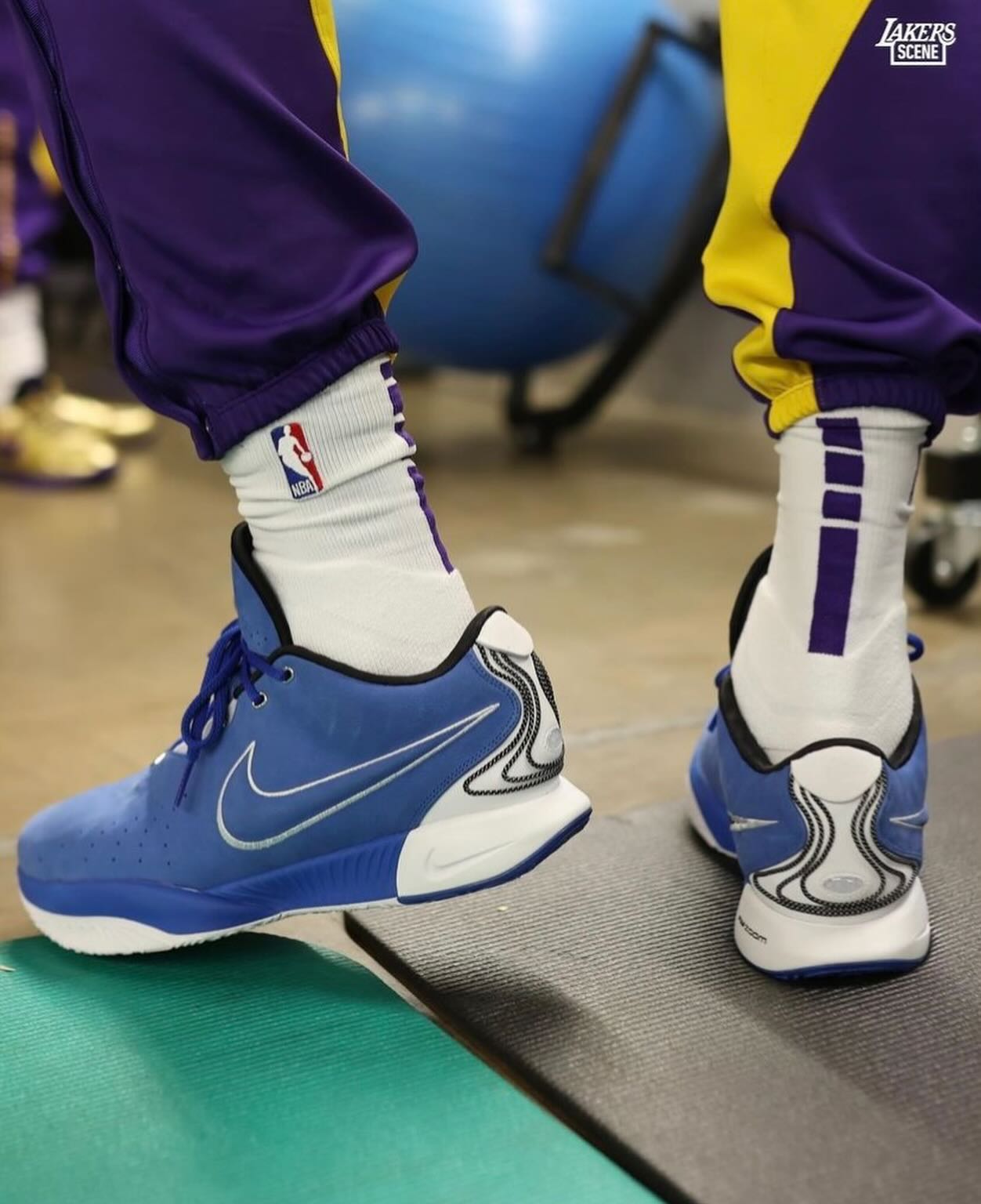 在今天湖人与独行侠的比赛中,詹姆斯上脚杜克大学 PE 配色的 Nike LeBron 21,快来一睹为快吧!