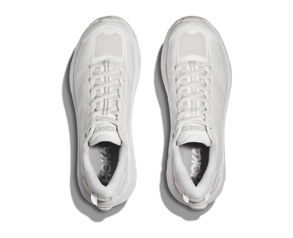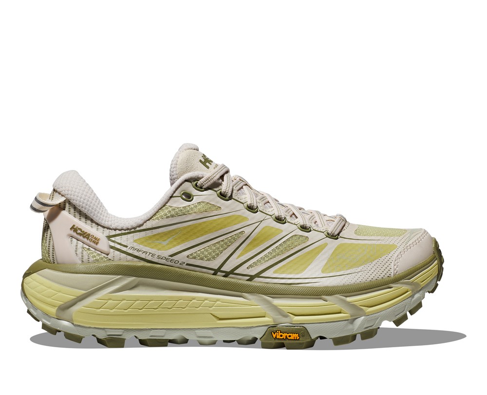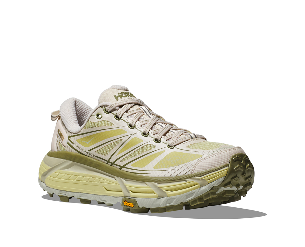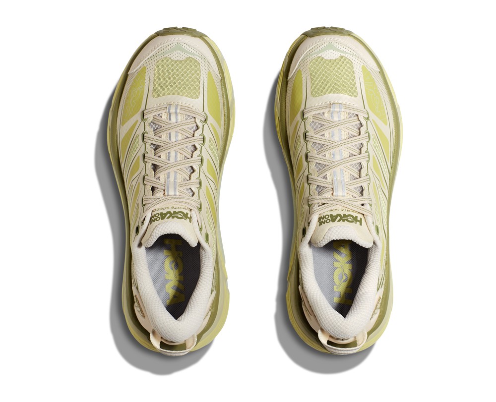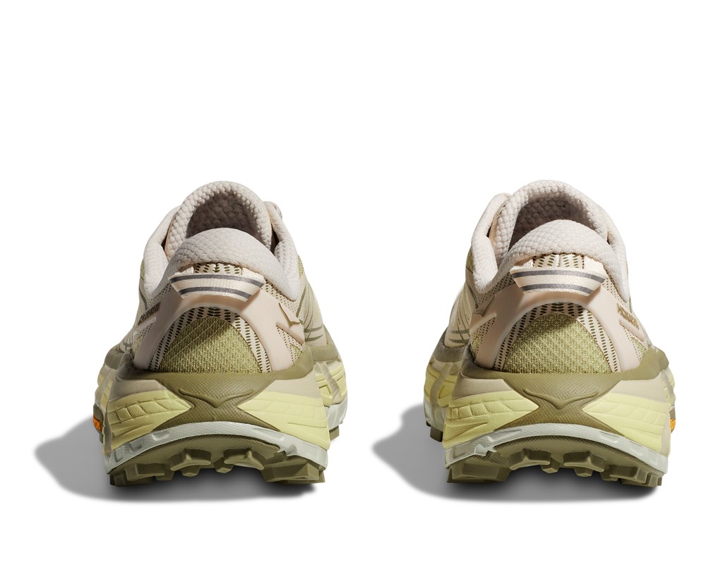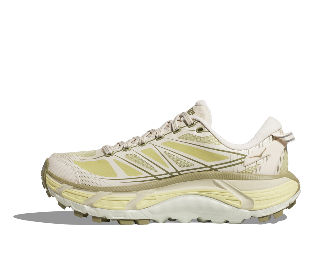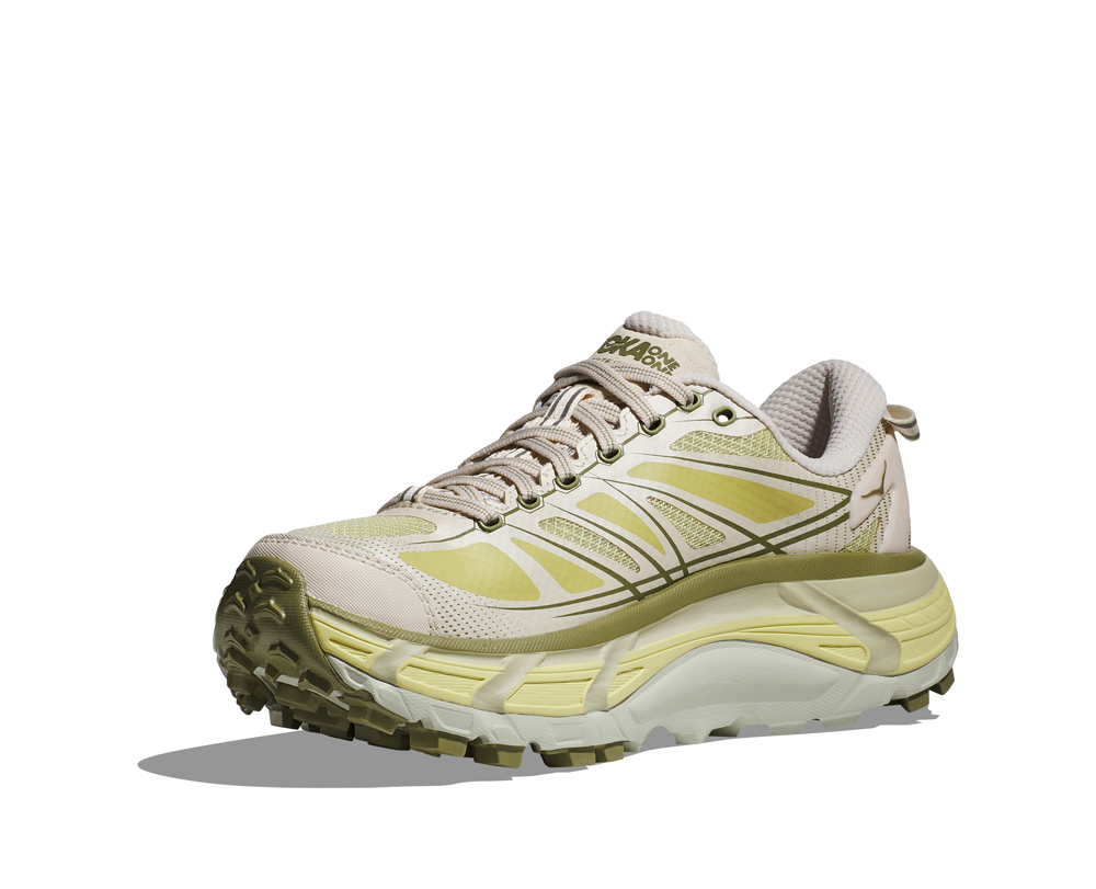 鞋面采用蛋酒色与浅绿色的大胆拼接设计,通过色彩对这款经典鞋型进行了现代化的诠释,以不断更新的设计与配色尽显 HOKA 大胆先锋的设计风格,为 MAFATE 系列注入全新时尚能量。