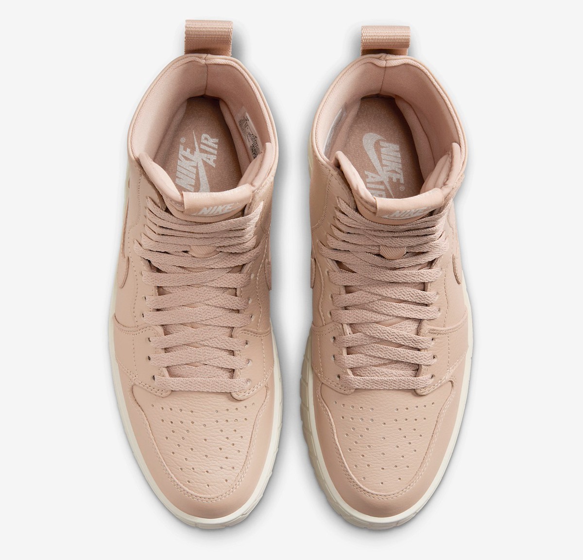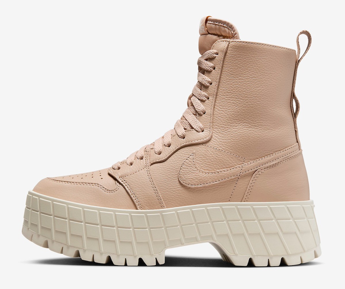 整双鞋自然还是以 Air Jordan 1 为蓝本进行创作,将鞋帮和鞋底进行了加高加厚处理,更为适合女孩子上脚搭配,增高效果肉眼可见。