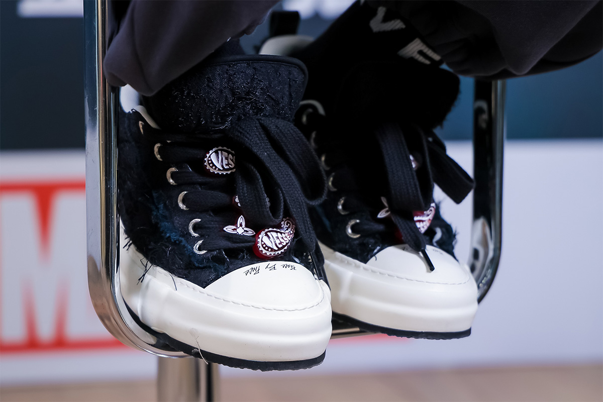 吴建豪:今天这个鞋子就是之前看过的「牛轧糖」。一个我觉得在设计上的一个升级版,然后带给大家一个更有个性更有态度,有更有好玩的一些点在上面。