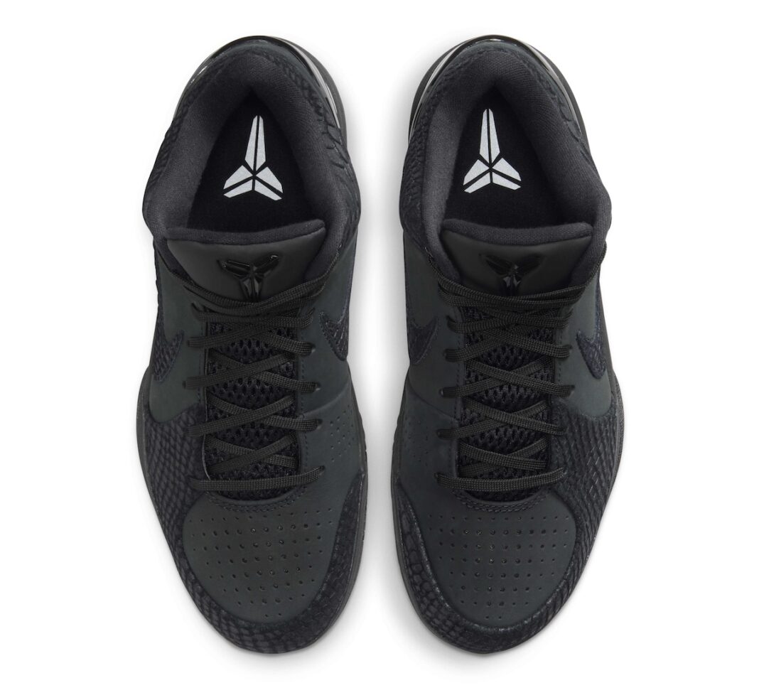 鞋身一袭黑色调呈现,仅在后跟位置点缀金色科比签名,名副其实的黑曼巴配色。