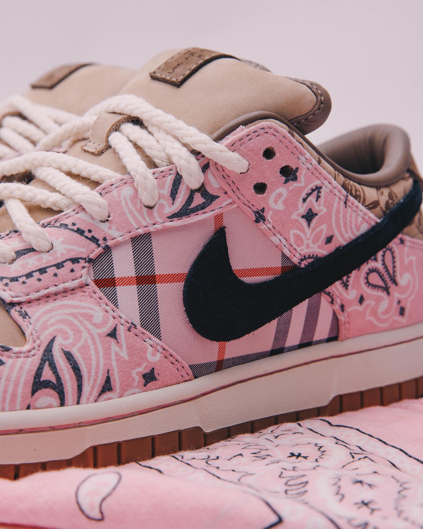 设计方面与 TS x Dunk SB 保持一致,包括构色方案以及撕撕乐玩法。