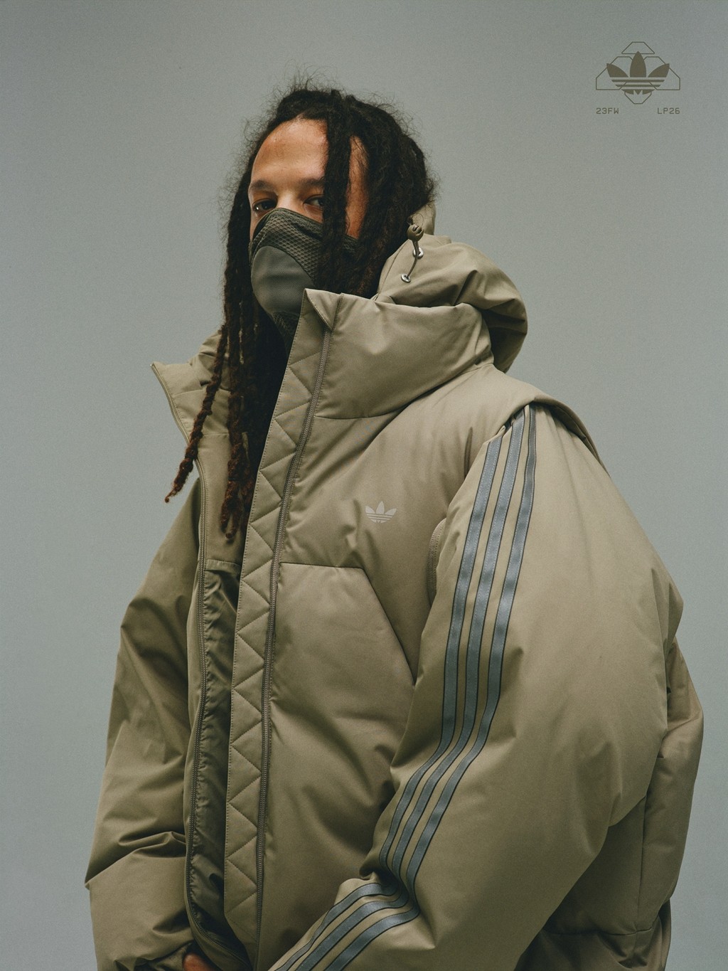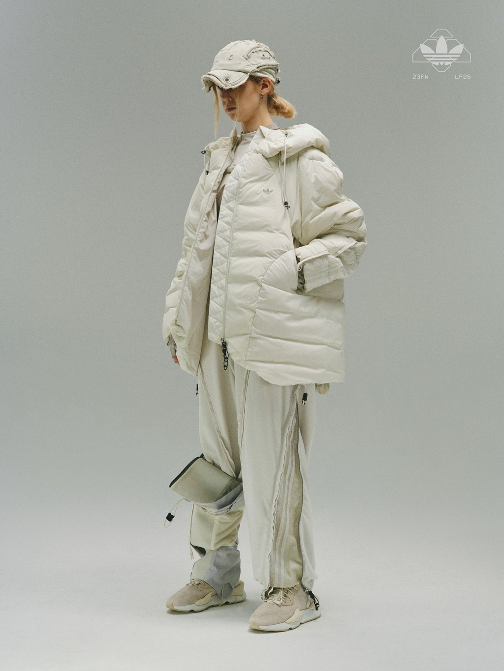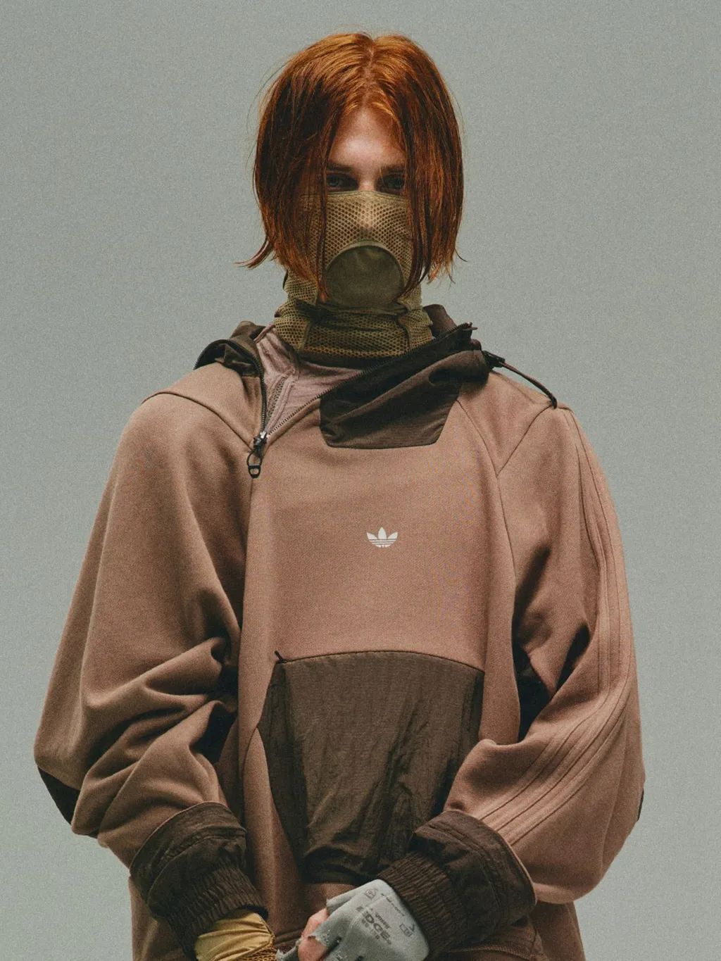 帽围大小可通过抽绳调节,侧向拉链从帽子一直延伸到腹部,造型调整范围更大。