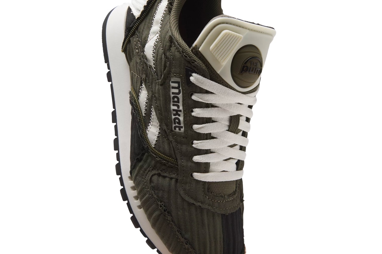 细节方面,除了传统的 Reebok Logo 和充气按钮外,更将侧身绣上了 MARKET 字样,彰显联名身份。
