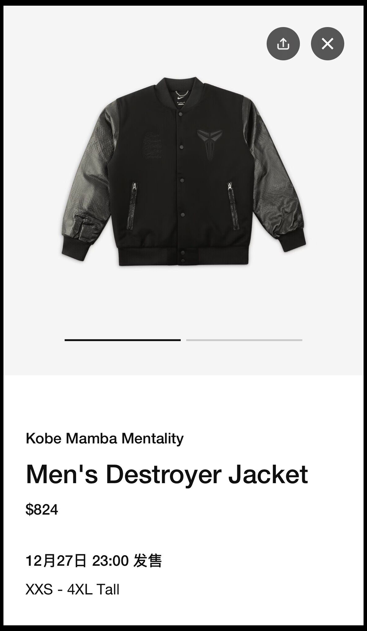 同时相关服饰也正式亮相美区,大家关注的曼巴夹克也释出了定价,高达 $824 美元,约合近六千块,真不便宜。