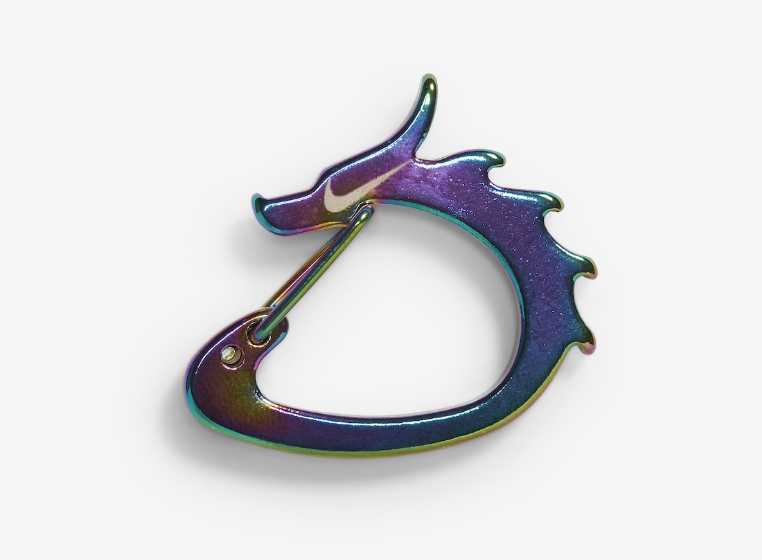 此外鞋身上的设计亮点还包括内外不同的 Swoosh LOGO 以及特殊的龙形金属登山扣。