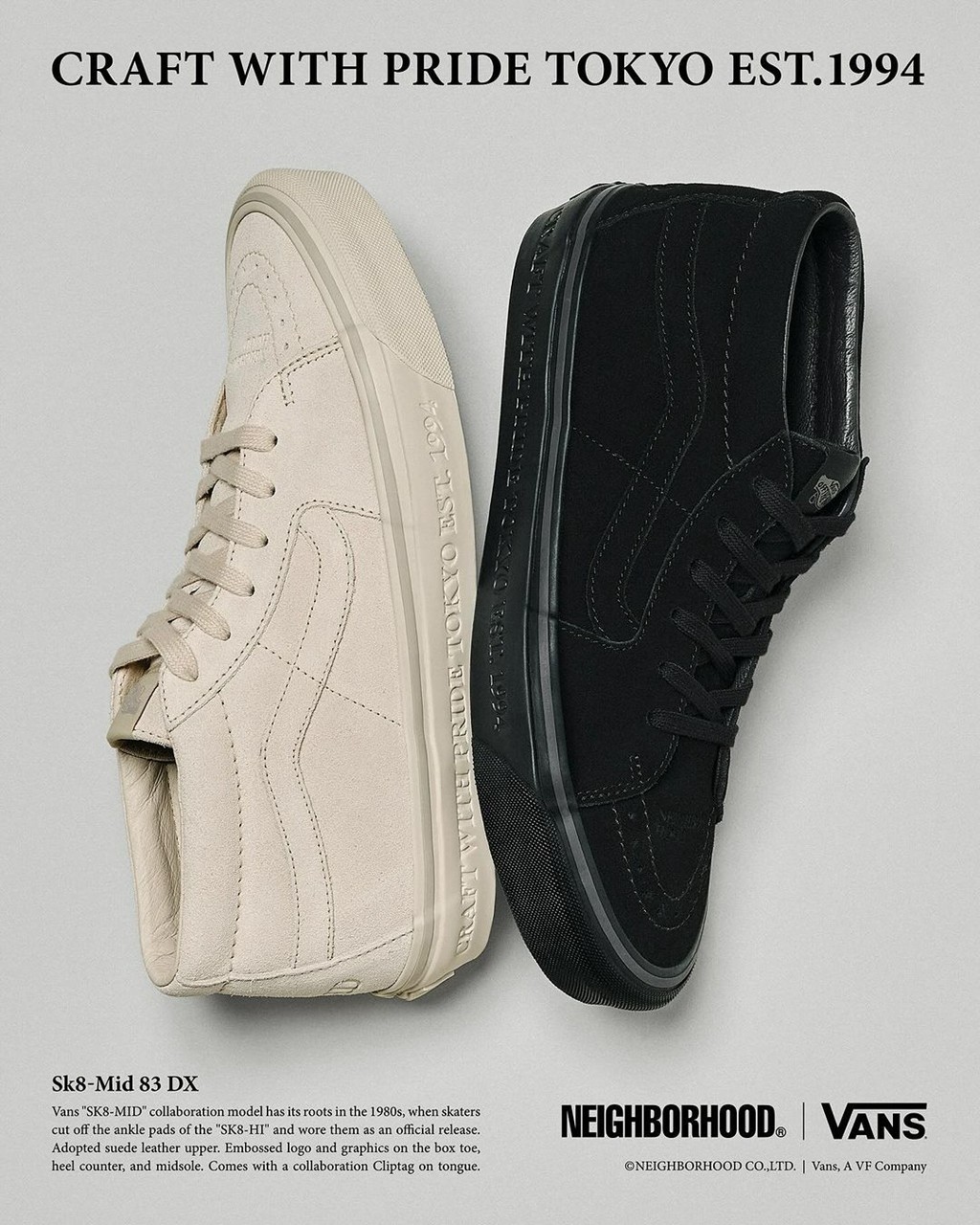 近日,Vans 携手老朋友 NEIGHBORHOOD,推出纯黑、纯白两款配色。