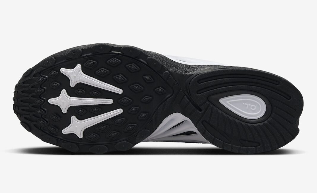 经典的鞋底纹被全掌橡胶覆盖填充,能明显体现联名身份的设计就是外底的三剑 Logo 了。