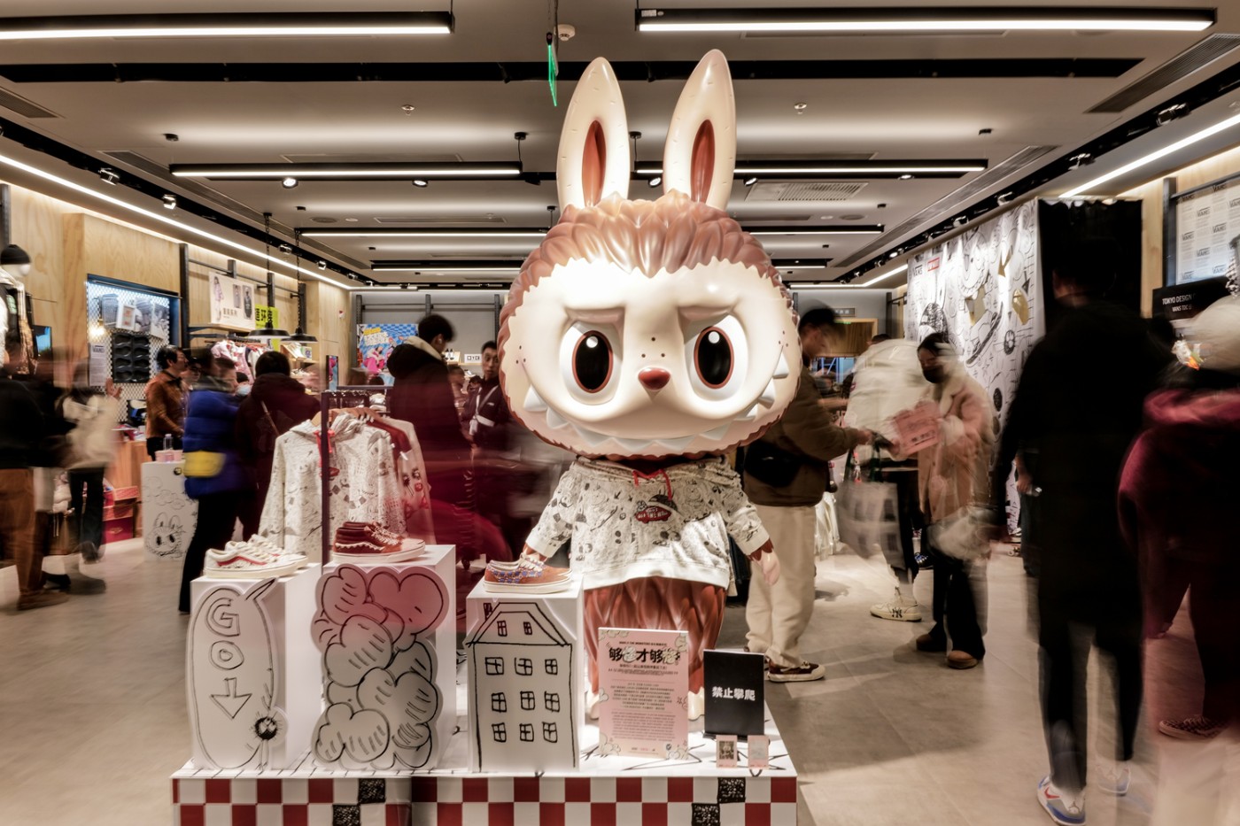 在此次的开幕仪式当中,Vans 在带来全新单品的同时,更特意设立了一个高达 2.5 米的巨型 LABUBU 雕塑,以此力捧 Vans 与艺术家龙家升携手打造的 Vans x THE MONSTERS 联名鞋服系列。