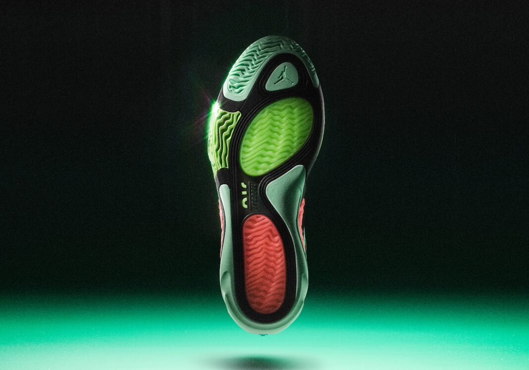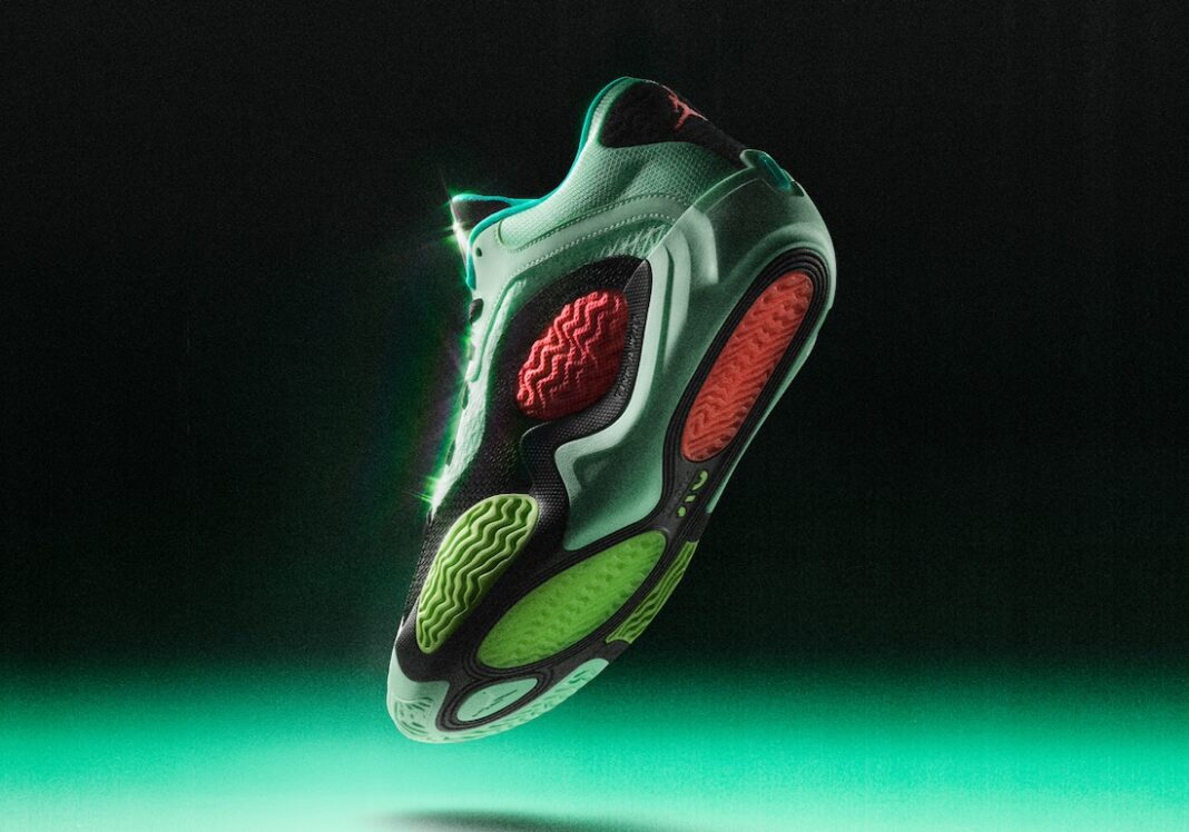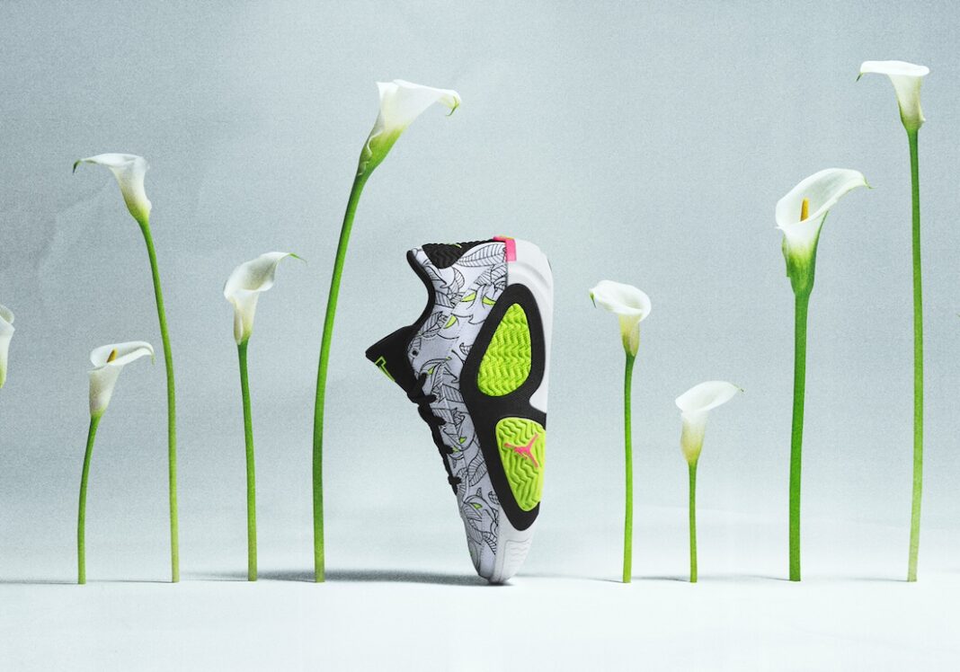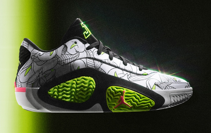 除此之外首发配色为 Jordan Tatum 2 “Momma’s Boy”,整体配色来源于塔图姆母亲最喜爱荧光绿色和马蹄莲花朵为灵感设计。
