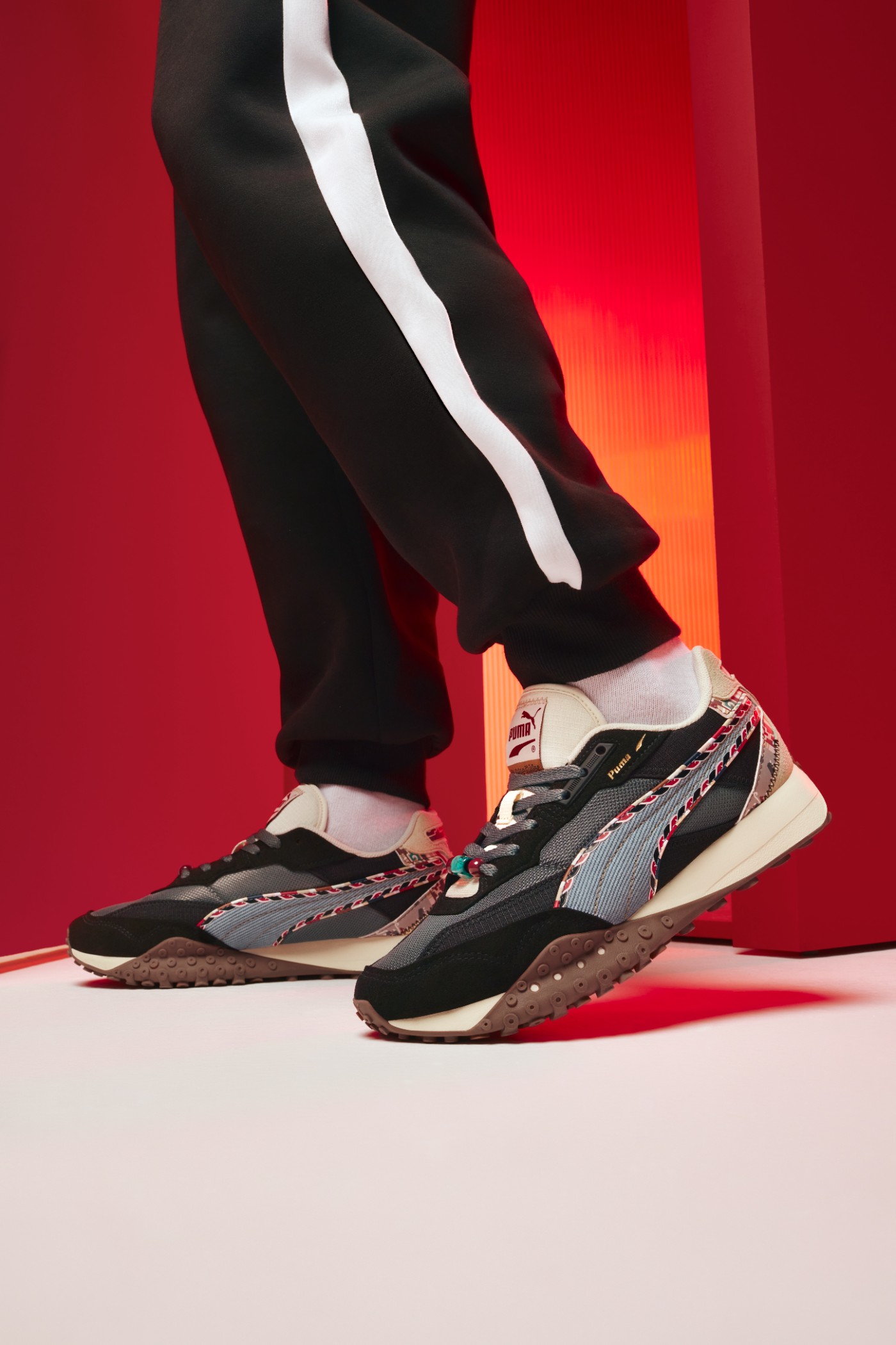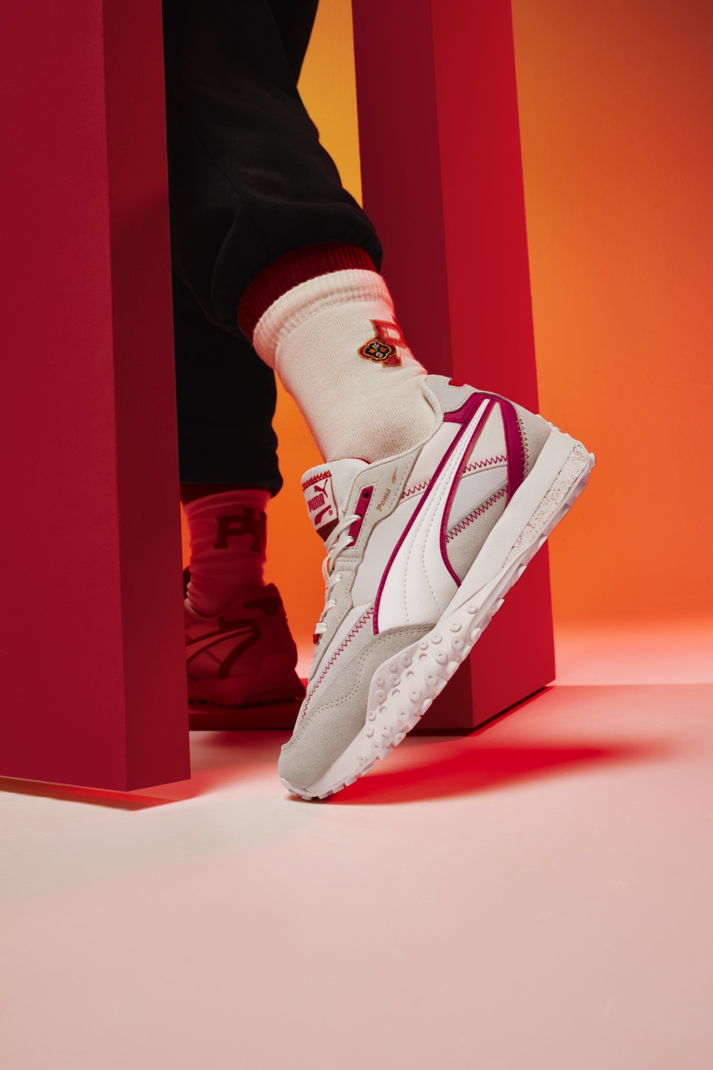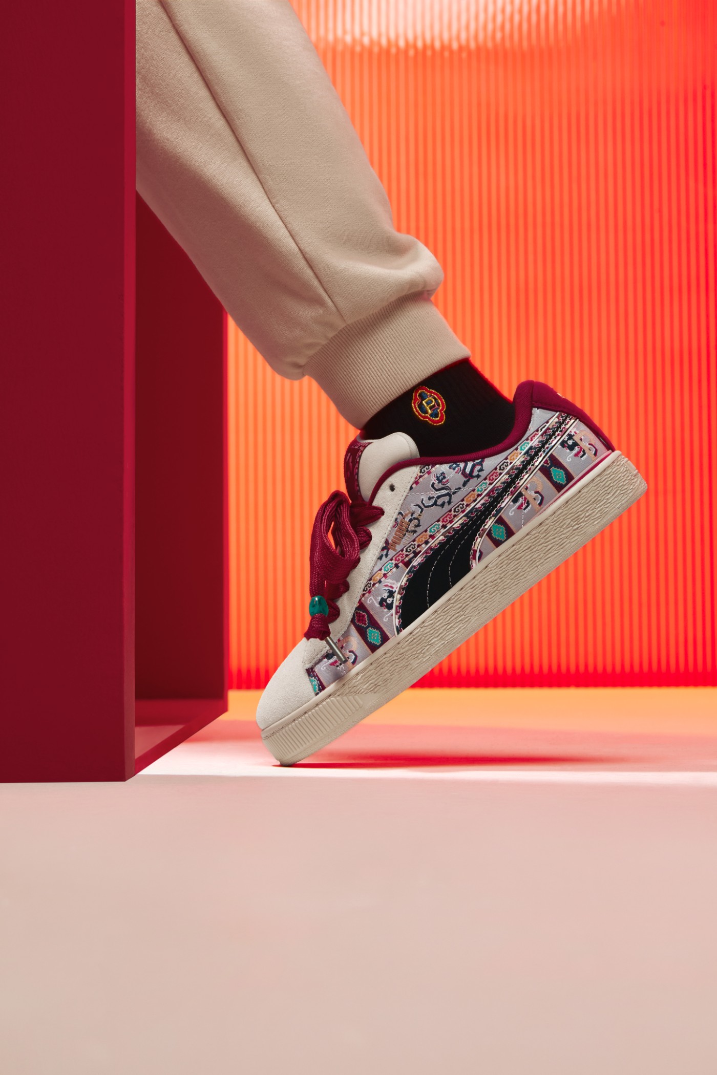 而两双 PUMA「章鱼鞋」以中国红与民族特色纹样勾勒鞋身线条,复古百搭。