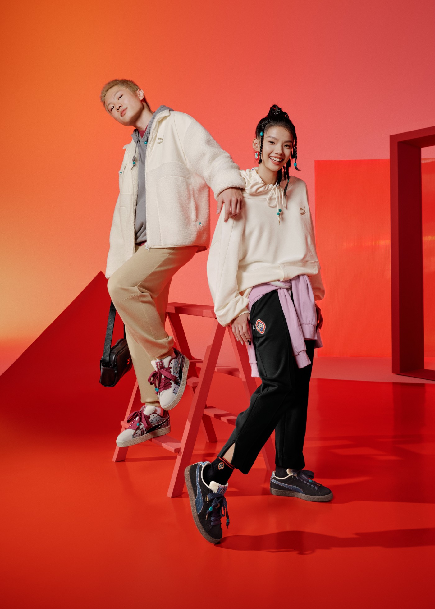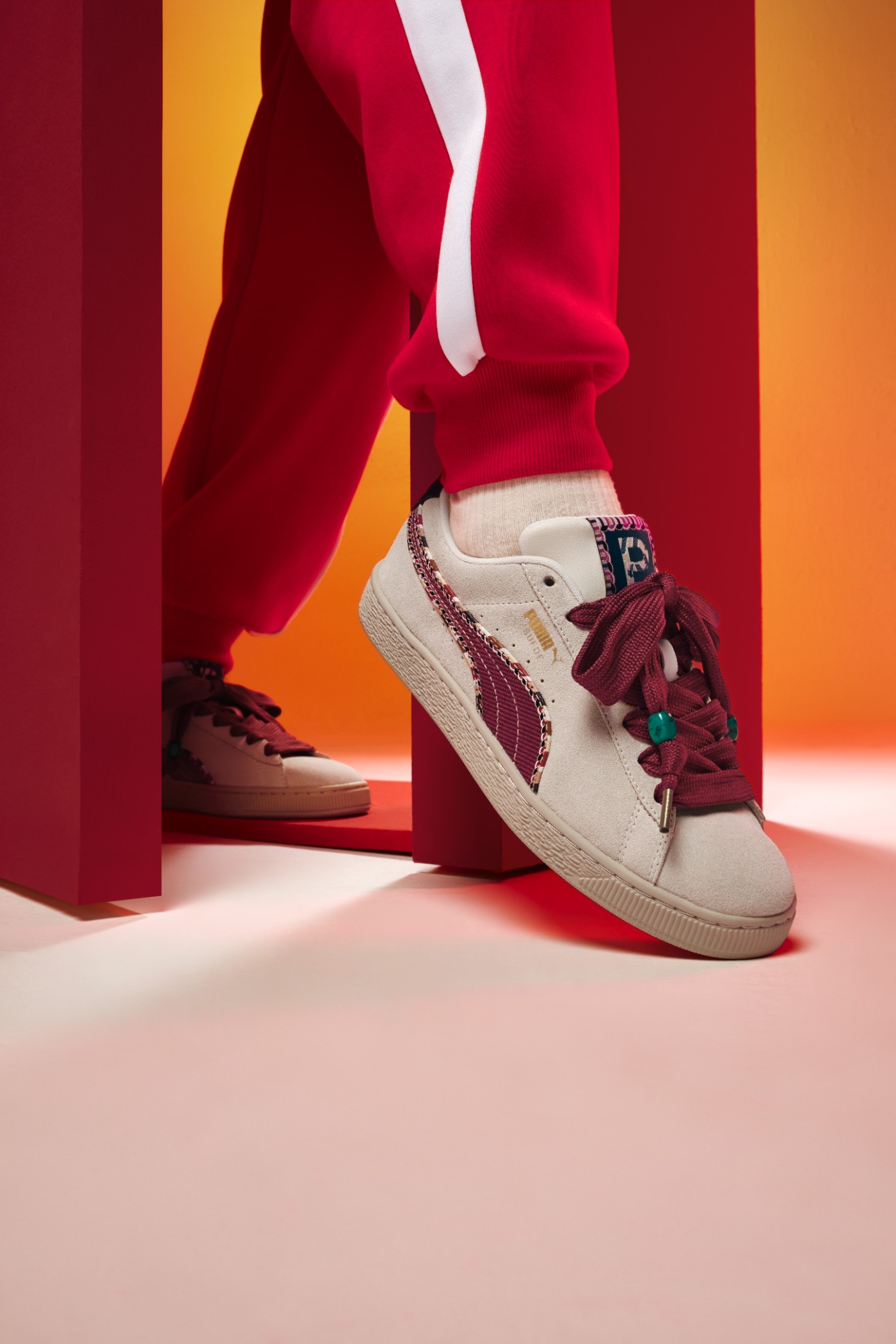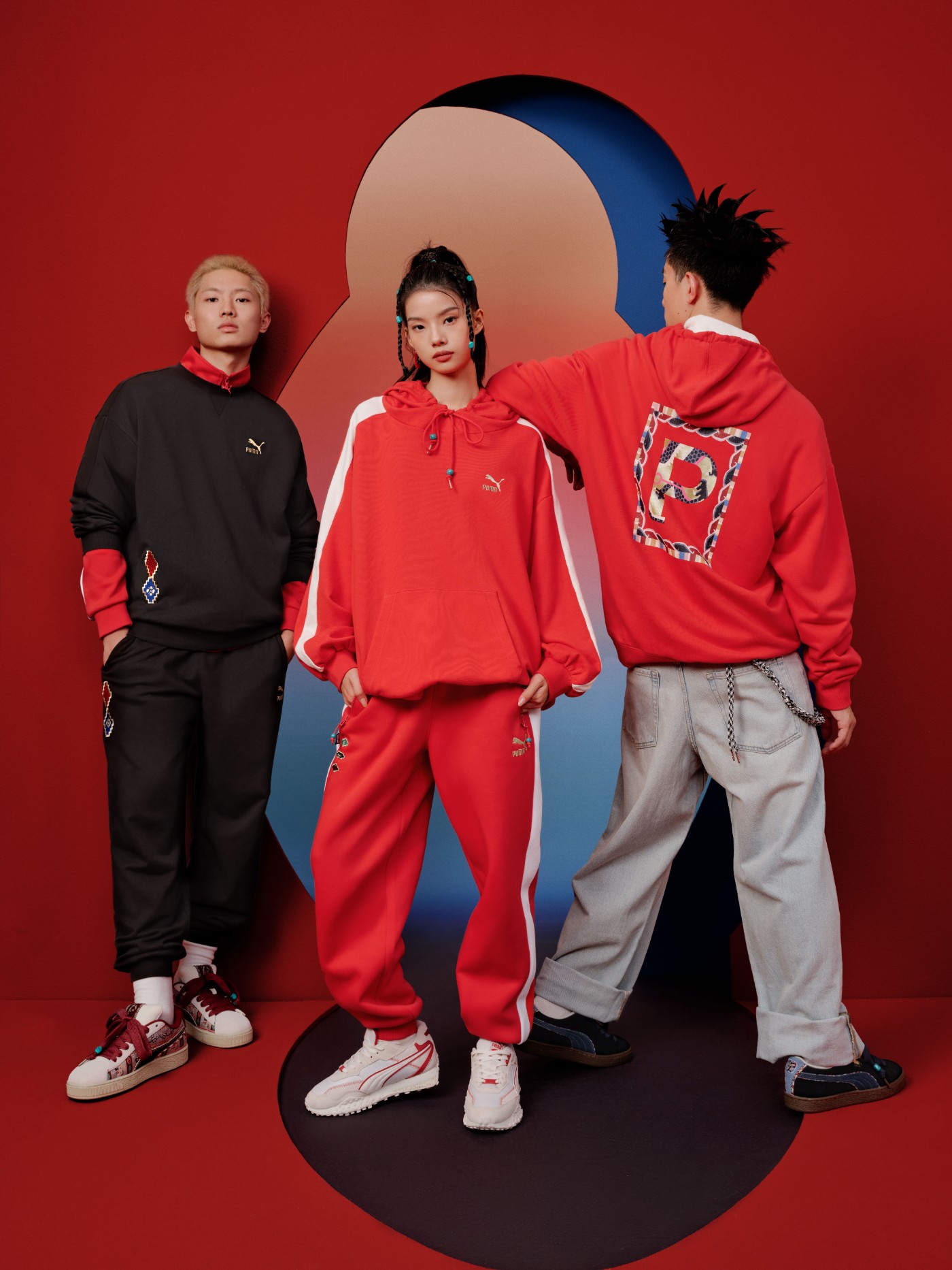 而两双 PUMA「章鱼鞋」以中国红与民族特色纹样勾勒鞋身线条,复古百搭。