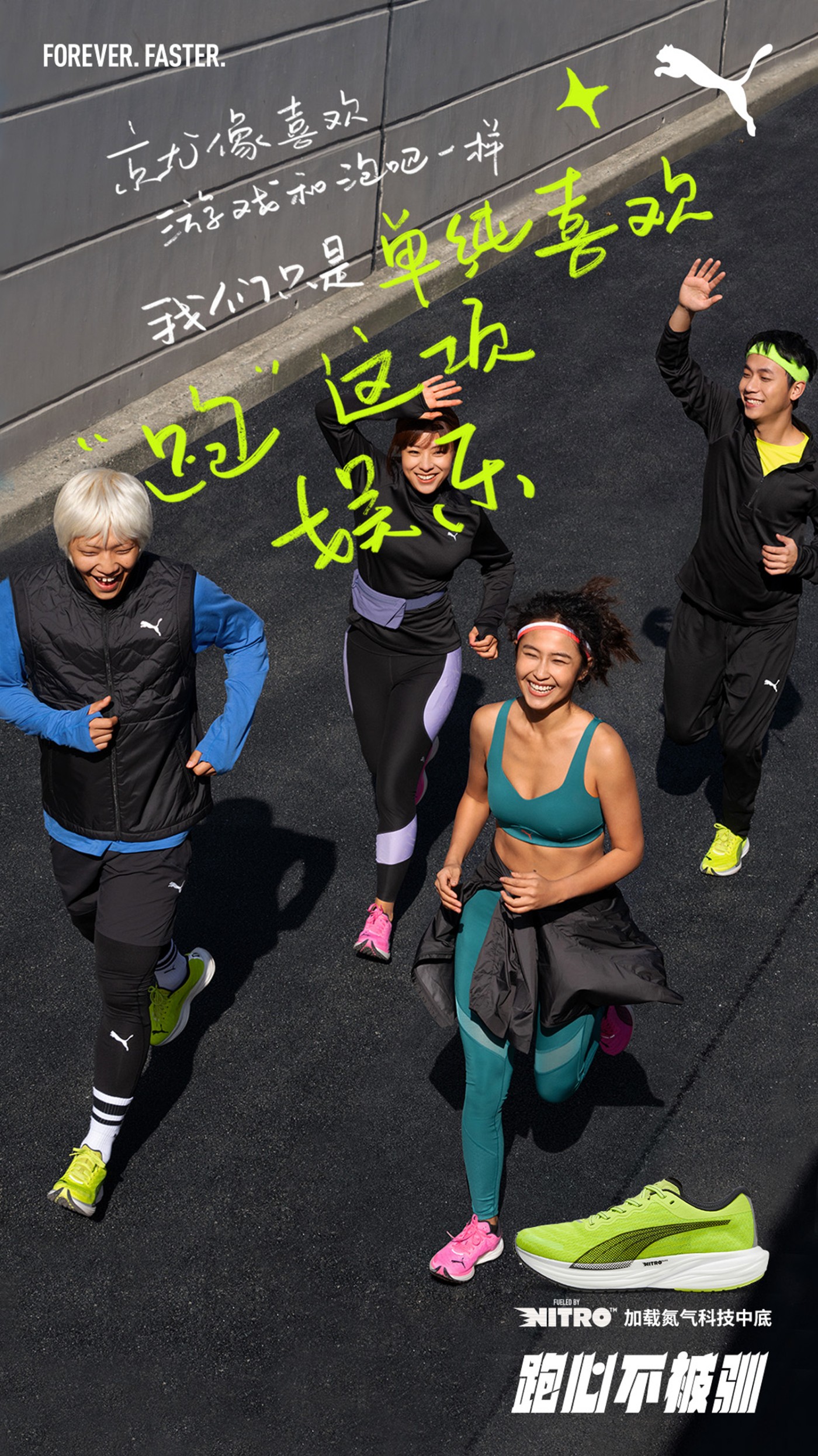 PUMA 也正式启用全新跑步态度标语《跑心不被驯》,鼓励跑者寻找随性、张扬、乐在其中的跑步状态,用自由随性的方式记录跑步故事。