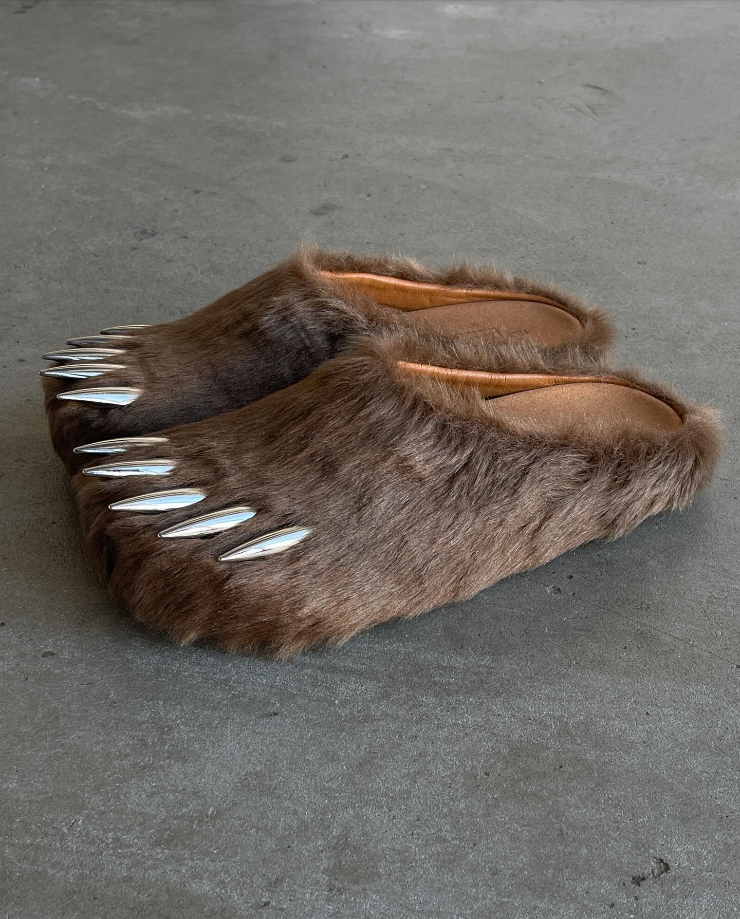 整双鞋以当下大火的「穆勒鞋」为基础进行创作,长长的绒毛乍看还有几分俏皮。