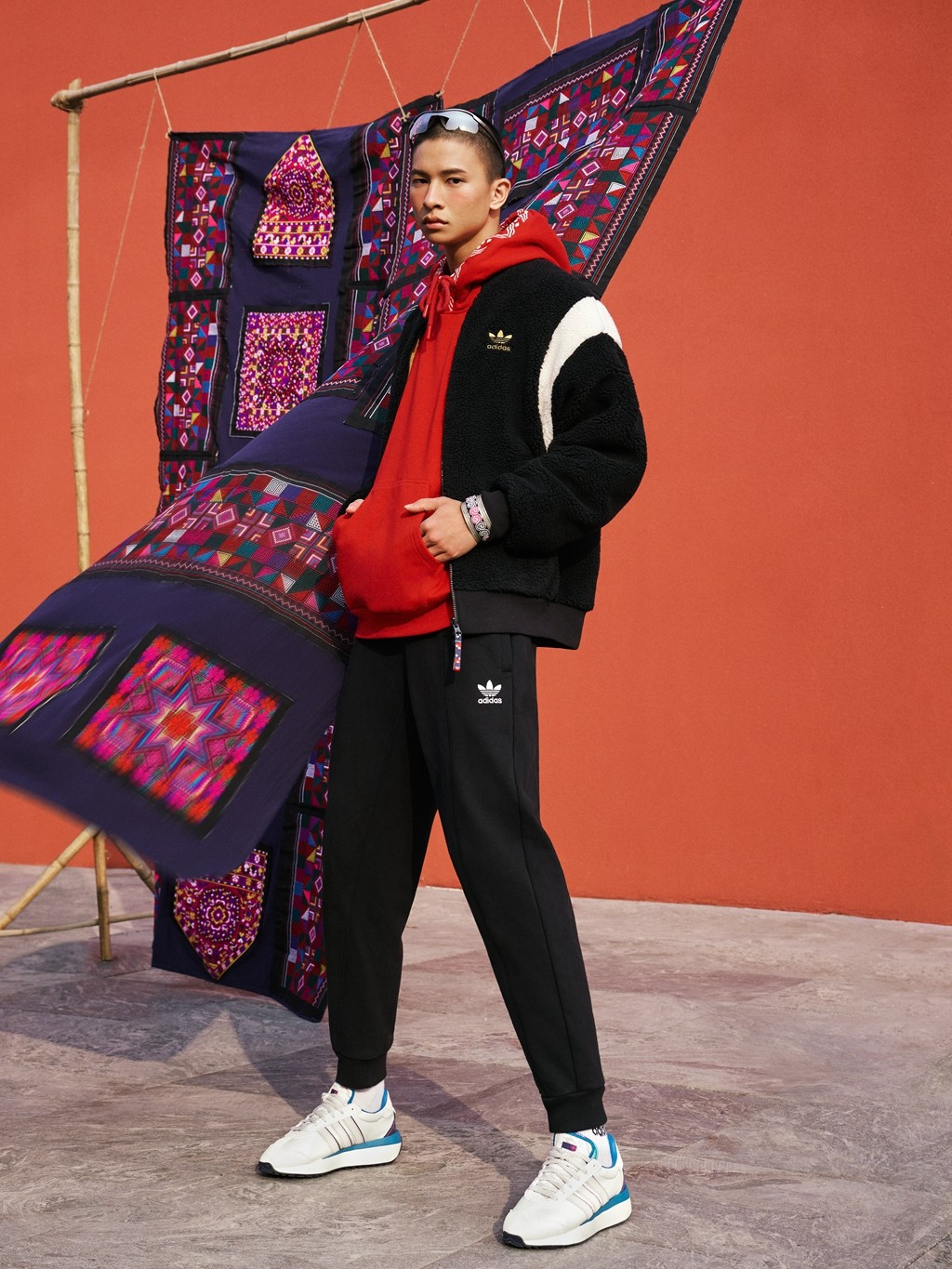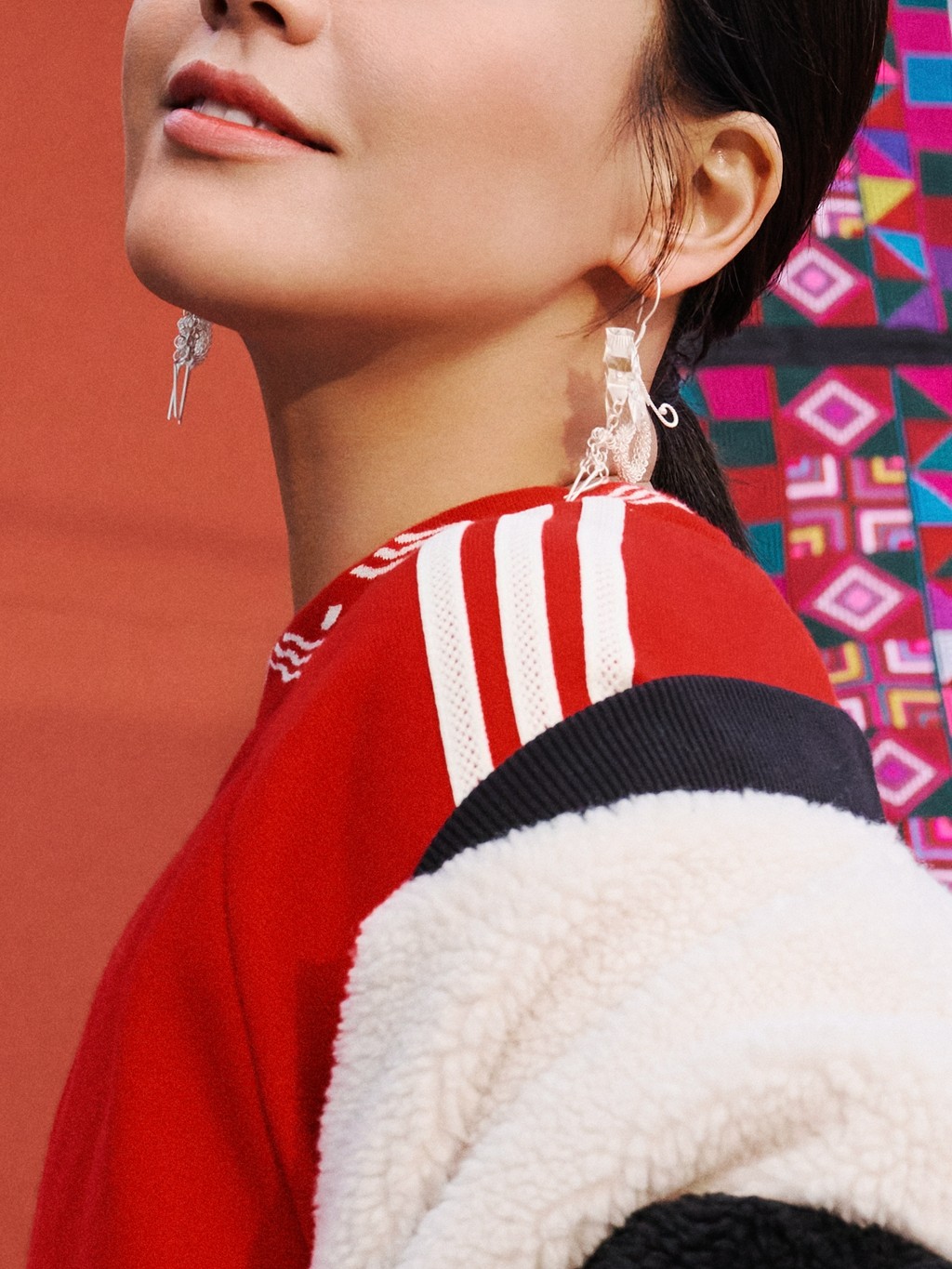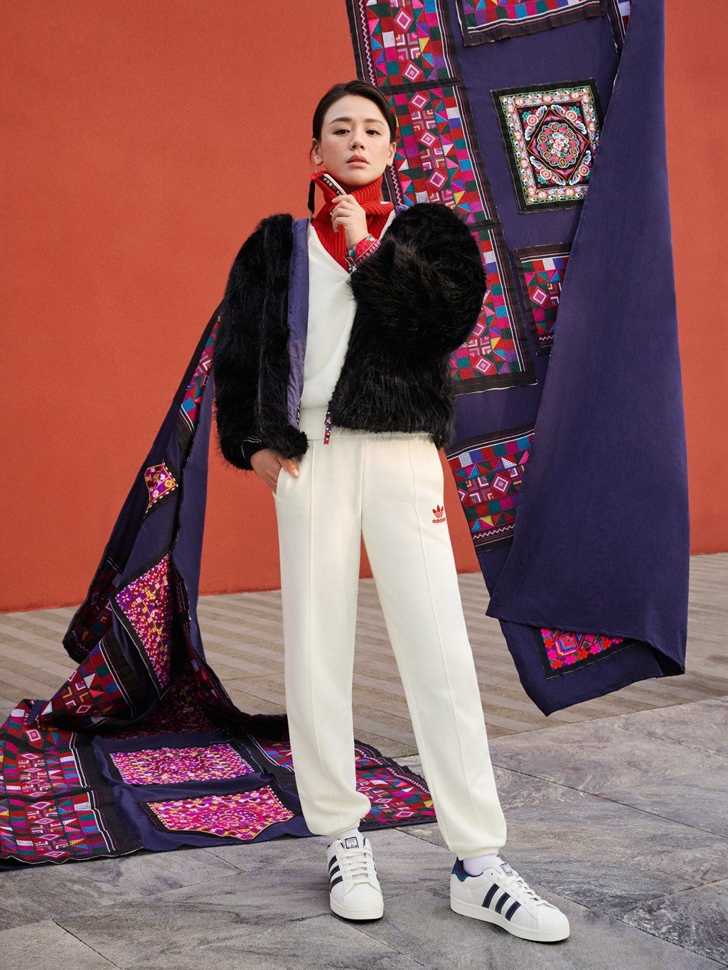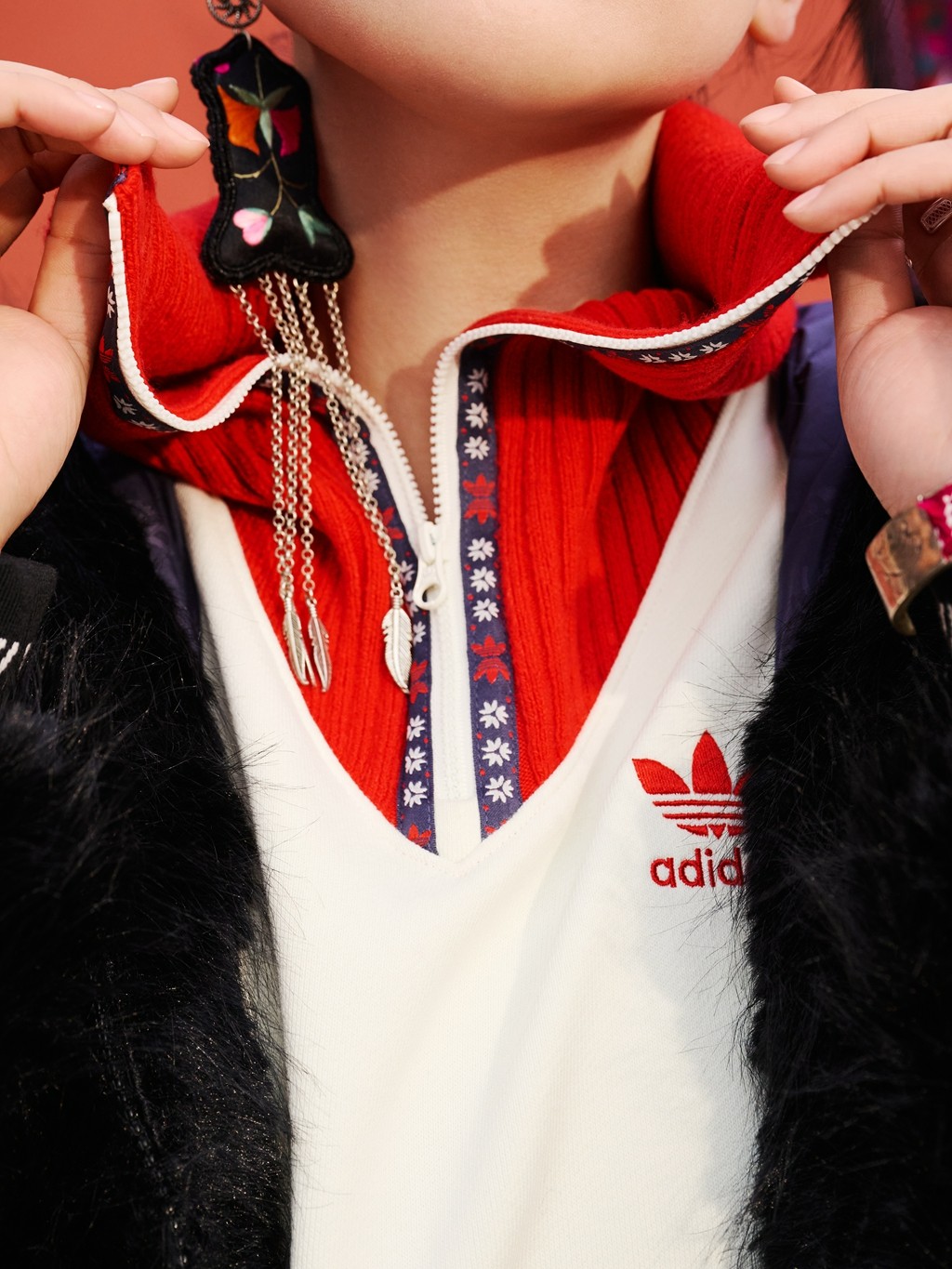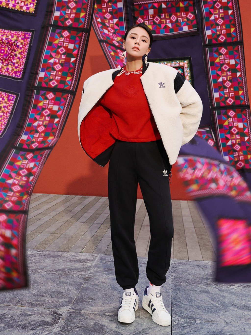 服饰方面,本次 adidas Originals 联手阮菲菲打造了运动套装、羊羔绒外套、毛衣等多款产品,并创作了多个系列专属图案,凸显龙年春节主题。