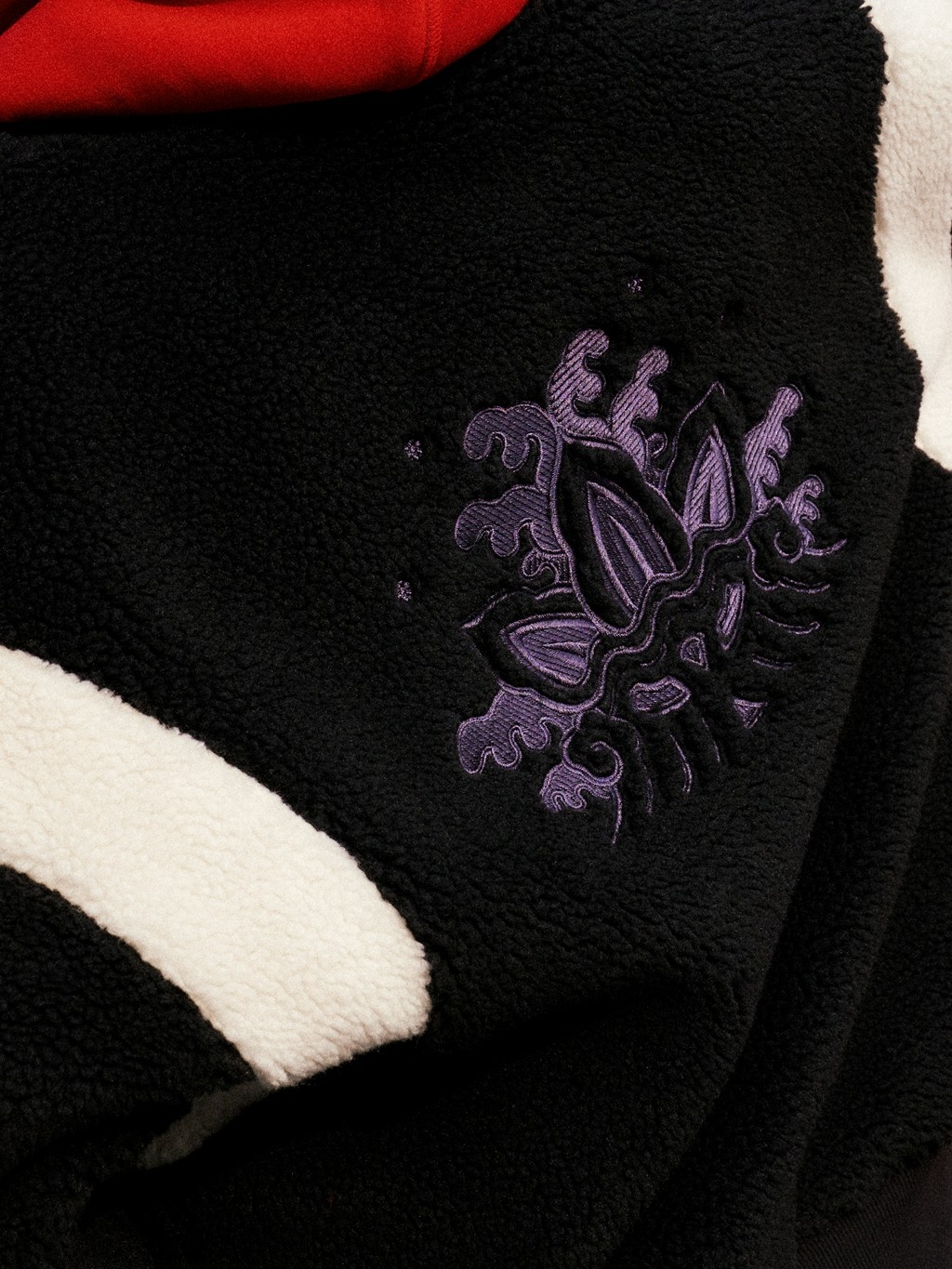 双方以国家非物质文化遗产「苗绣」的经典纹理图案中为灵感,以中国传统寓意纹理图案「鱼化龙」为主题进行设计,希冀在新的一年中打开生活新篇章,如鱼跃龙门,更上一层楼。