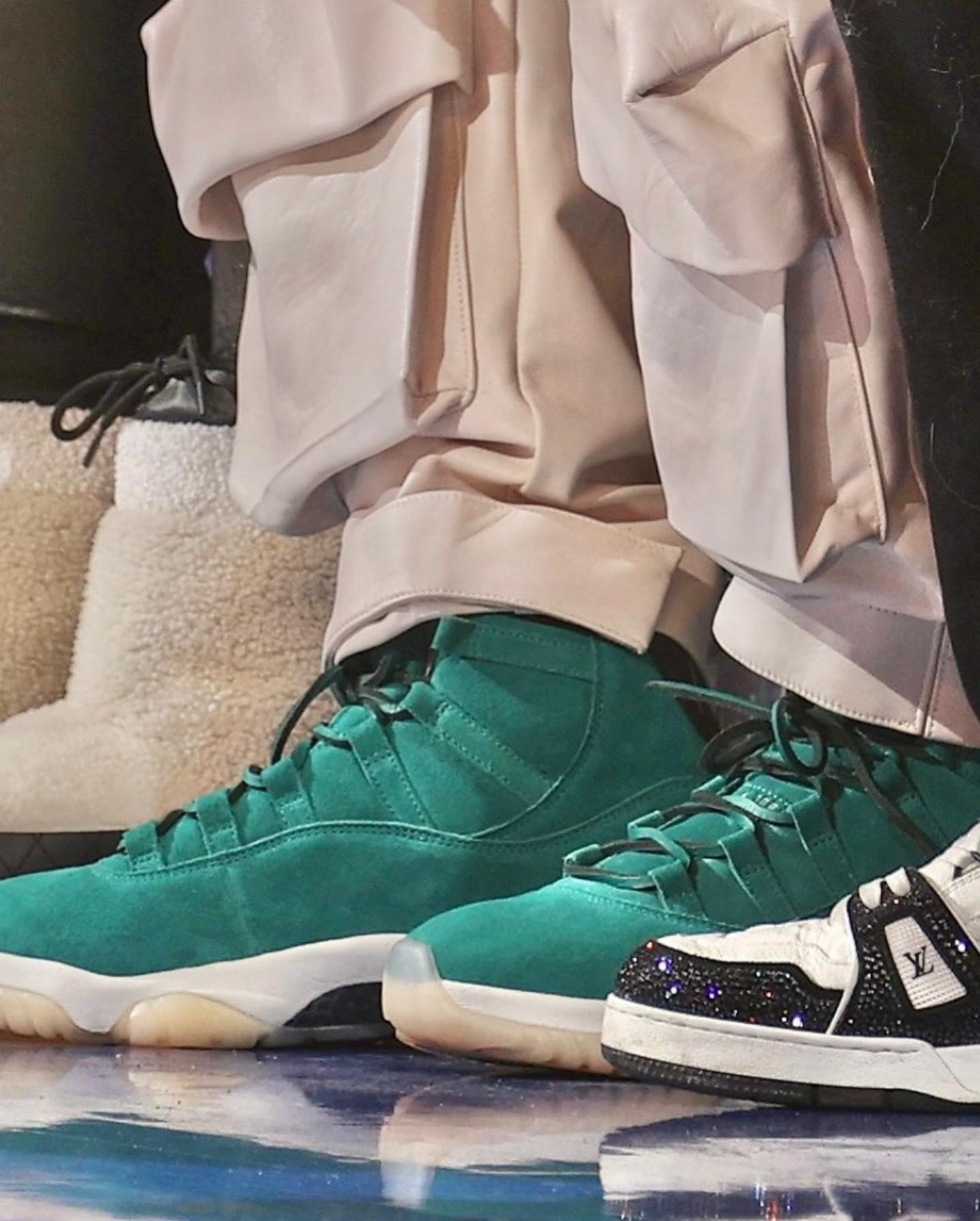 近期,Fat Joe 现身纽约尼克斯赛场,并上脚了一双从没见过的绿色 Air Jordan 11,难道「鞋王」真的要易主了?