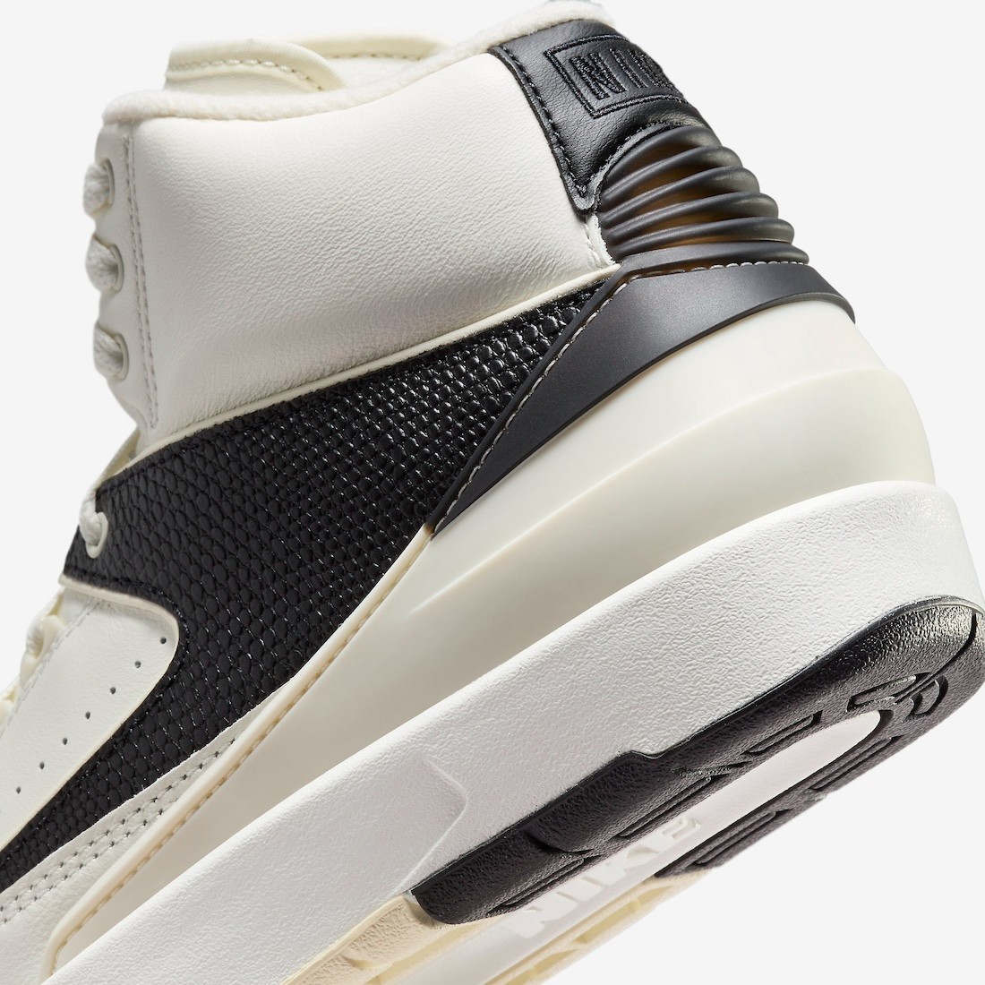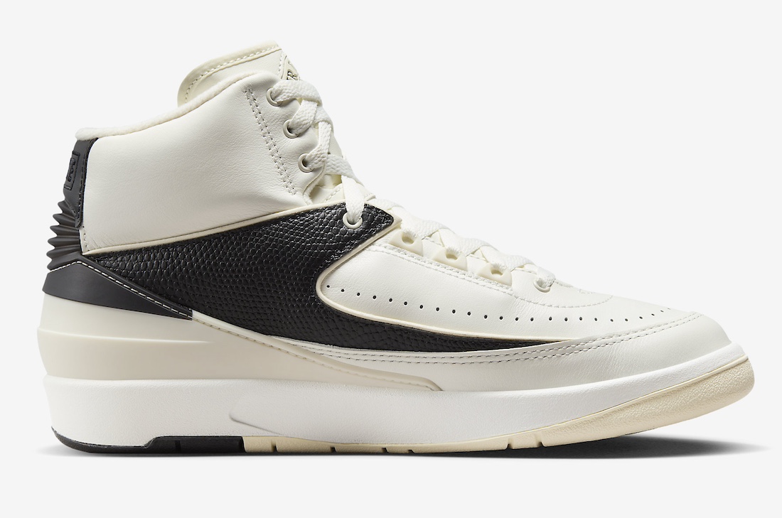 鞋身以全皮革包裹,并在侧身加入了蛇纹面料,质感相当在线,契合了 Air Jordan 2 一如既往的做法。