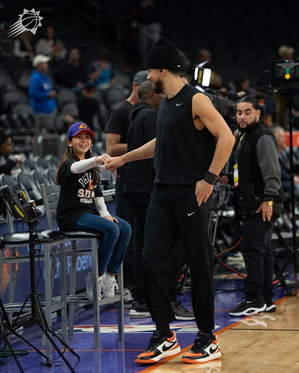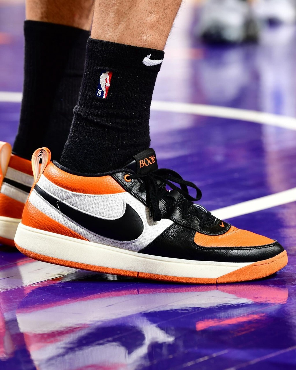 而在近日太阳的比赛中,布克再次上脚新配色 Book 1,彻底彰显了这双鞋无限的造型潜力。