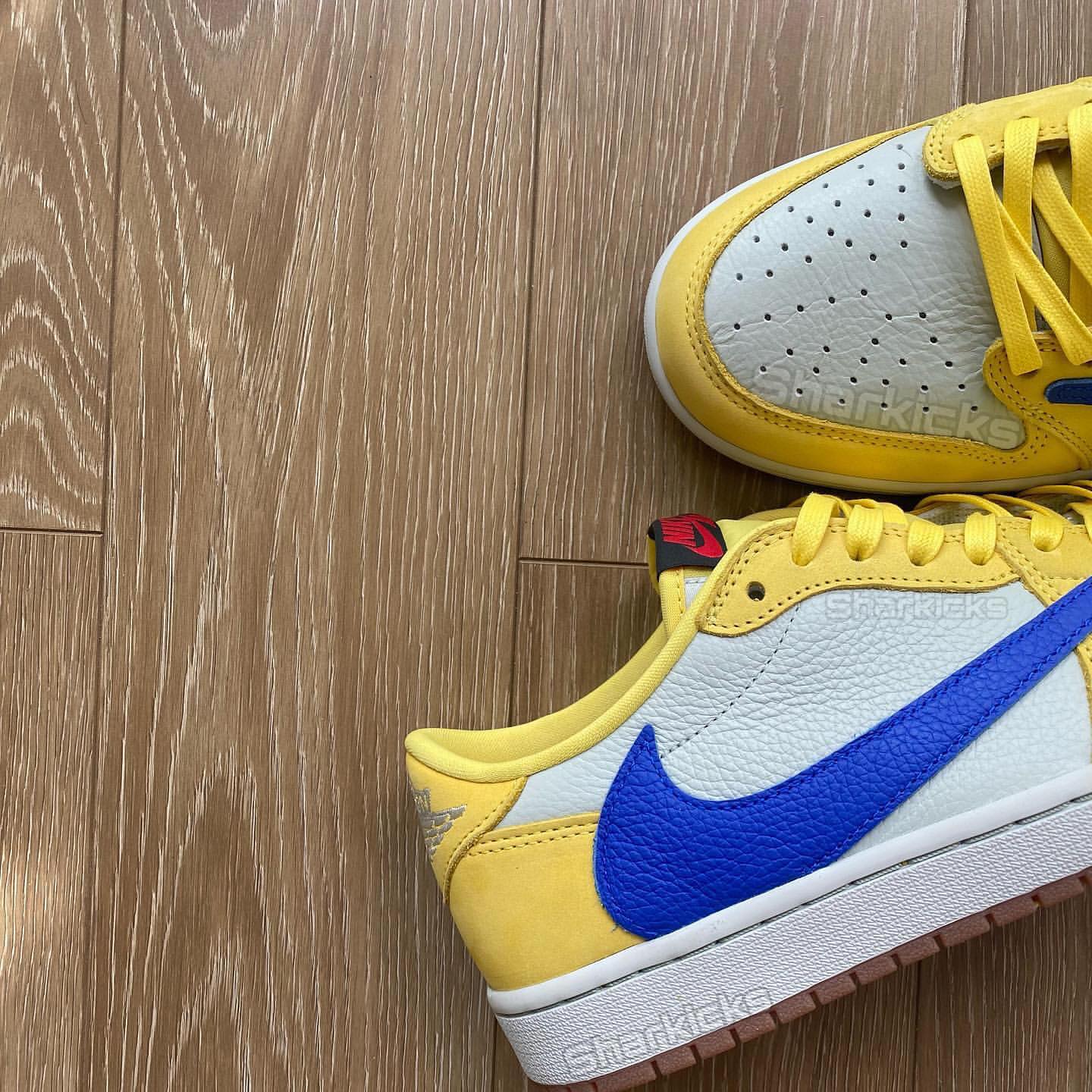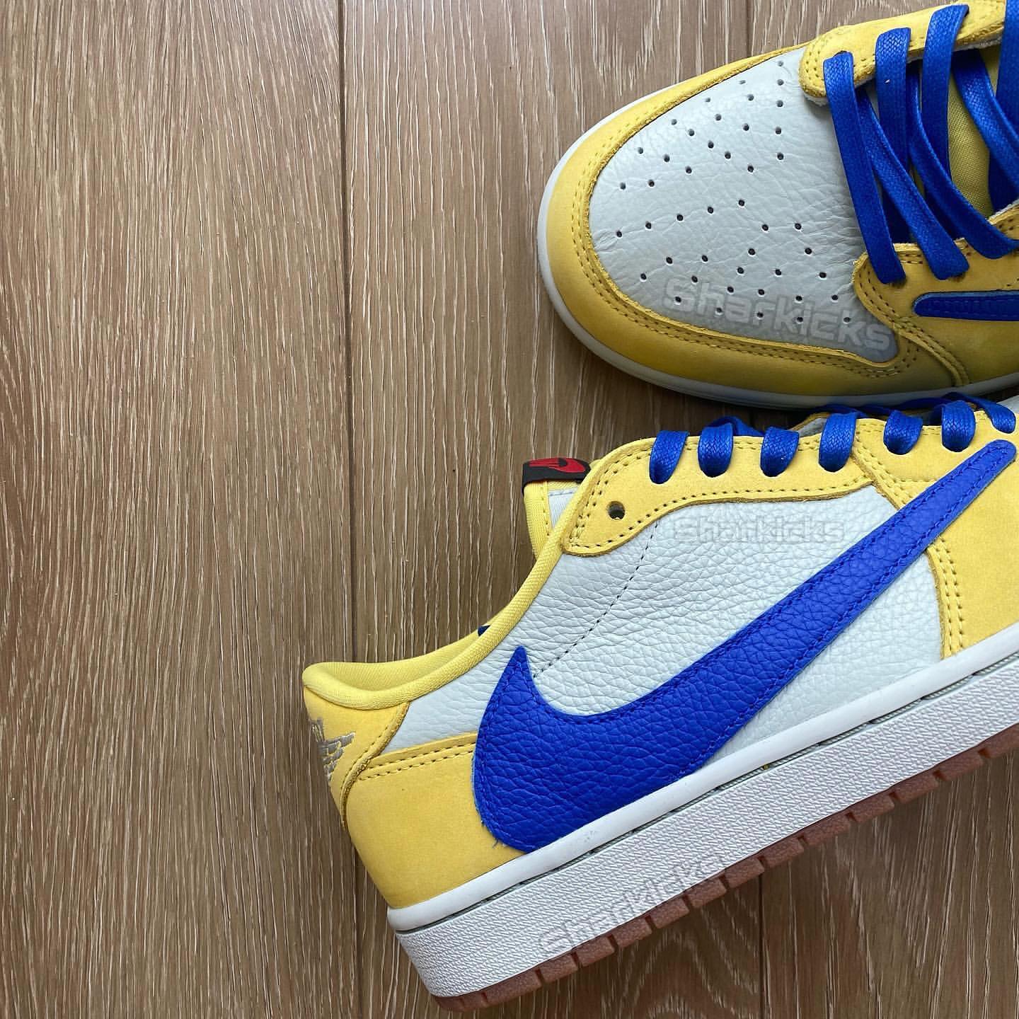 紧随其后,Travis Scott x Air Jordan 1 Low OG “Canary” 再度迎来了全新实物。