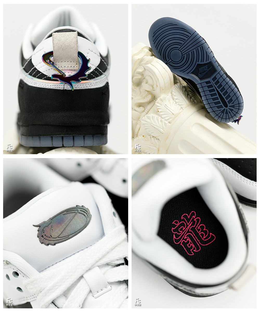 配件方面,Nike 给大家安排上了龙形金属的鞋带扣,反光的淬火表面在黑白双色鞋身的衬托下显得十分醒目。