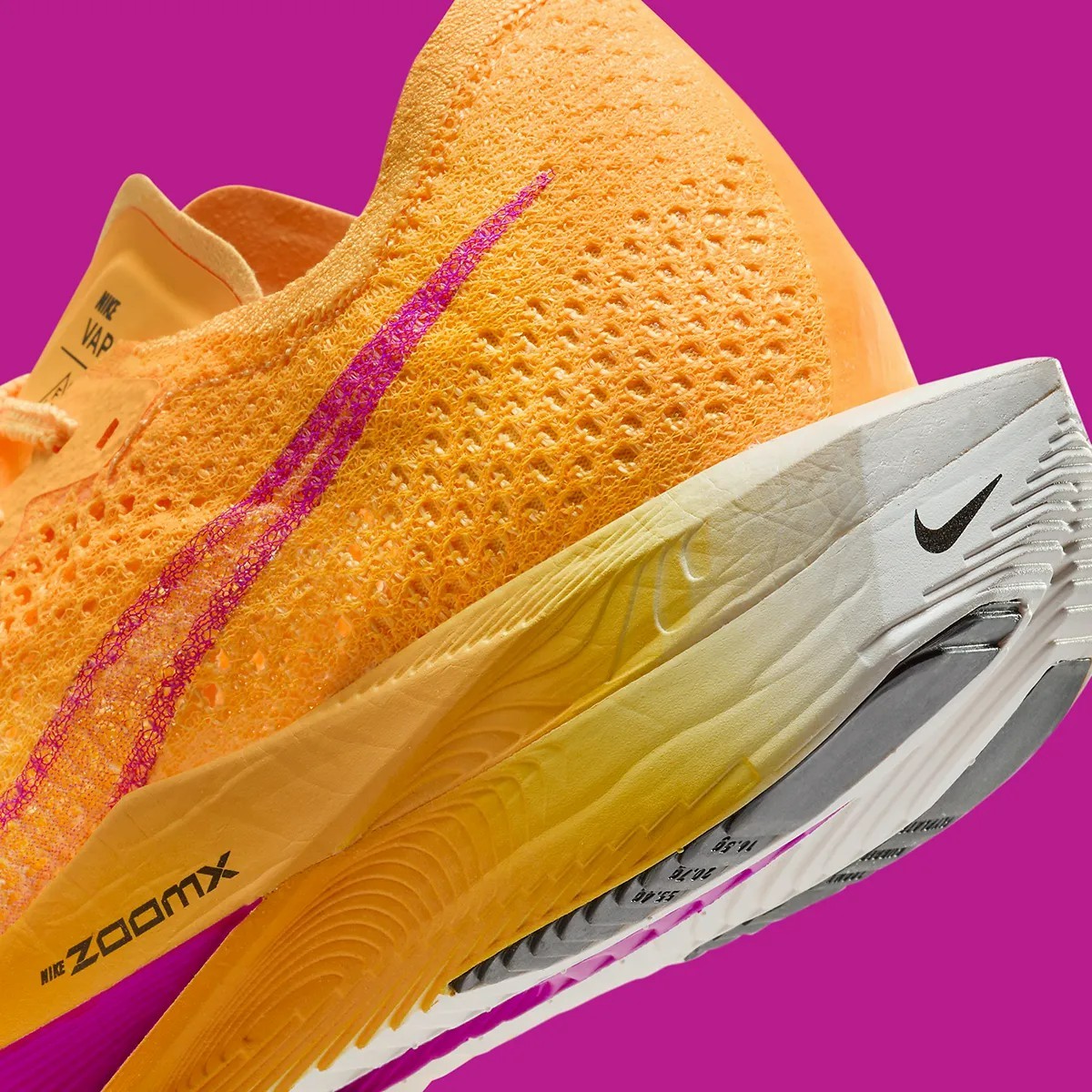 中底呈现几何切割造型并且增加了不少镂空,搭配 Nike 御用科技 ZoomX,实现澎湃的脚感。