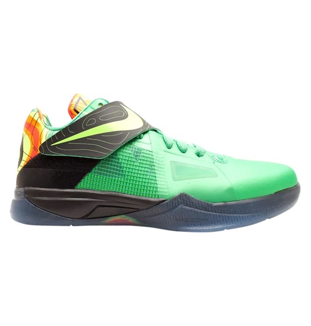 作为当年 KD4 中最为稀有的配色之一,灵感来自孩之宝旗下儿童发射玩具 NERF 标志性缤纷色彩。