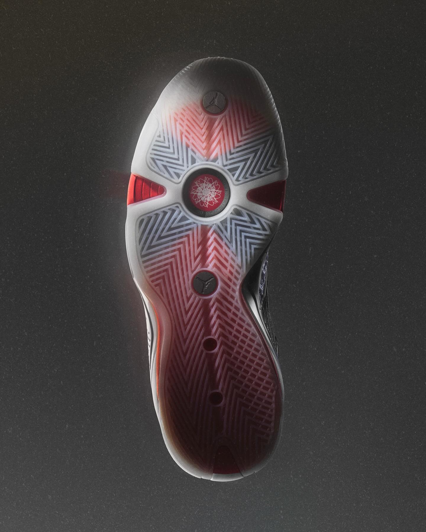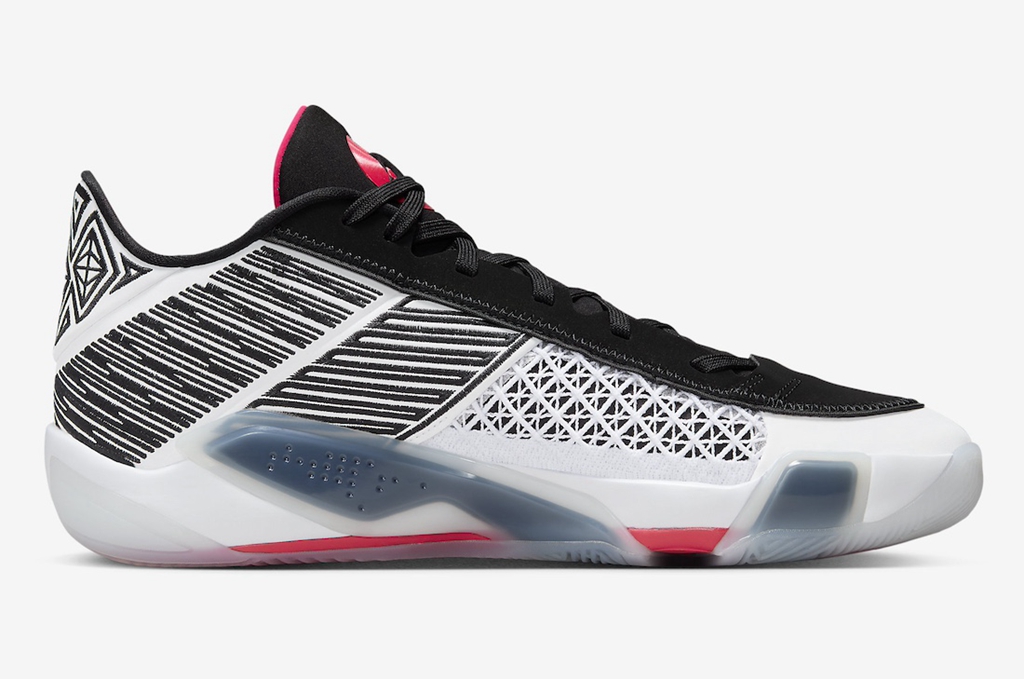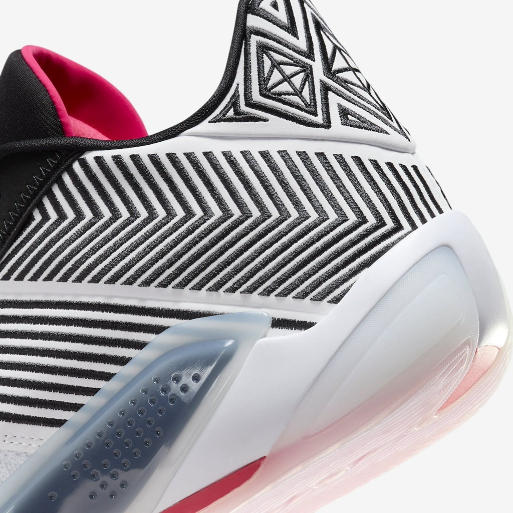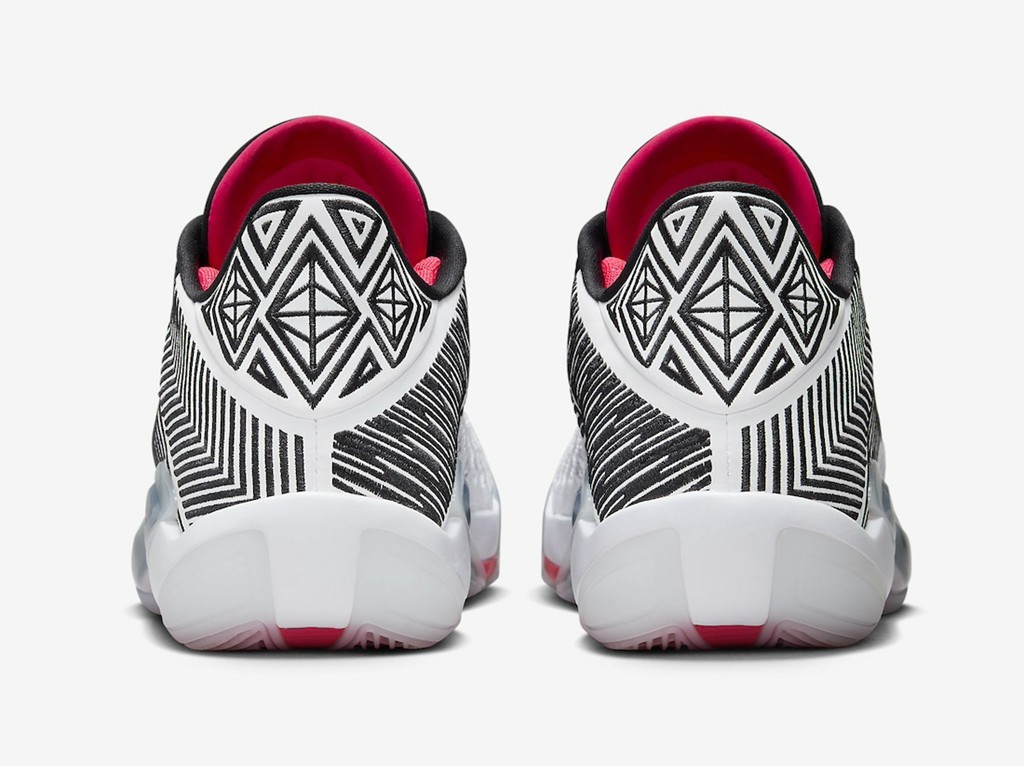 整双鞋配色上与 Air Jordan 38 首发版本一致,黑、白、红三色的勾勒,使鞋身颇具层次感,侧身还以条纹覆面。