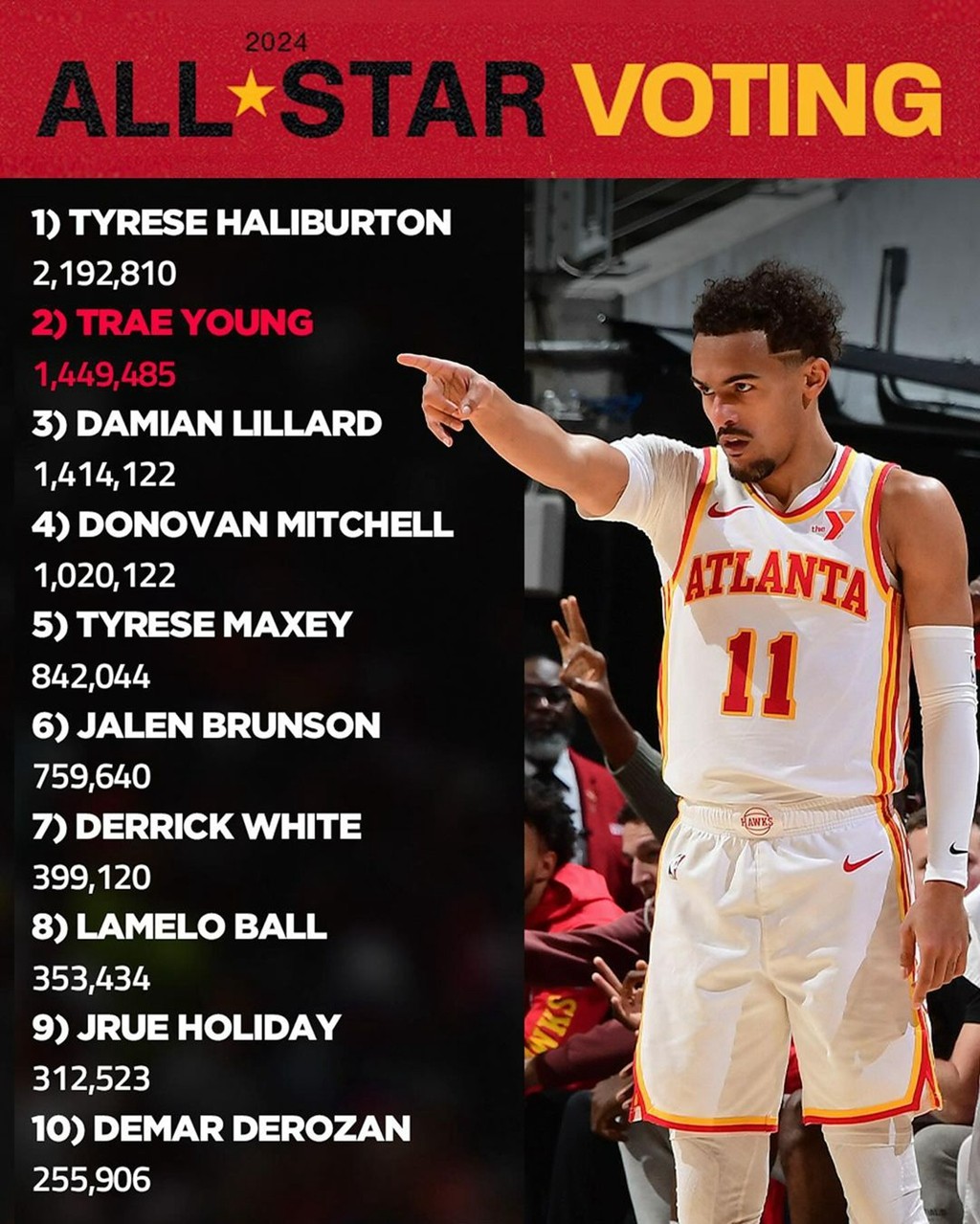 特雷·杨虽然最近带队战绩不好,但个人数据可观,如今的票数只能说勉强合理。