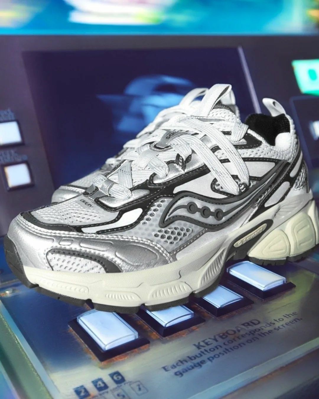 细节处理最好的复古跑当属这双索康尼,整体围绕电子表元素设计,鞋头、鞋跟 18:98 的时间字样正是品牌成立的年份。
