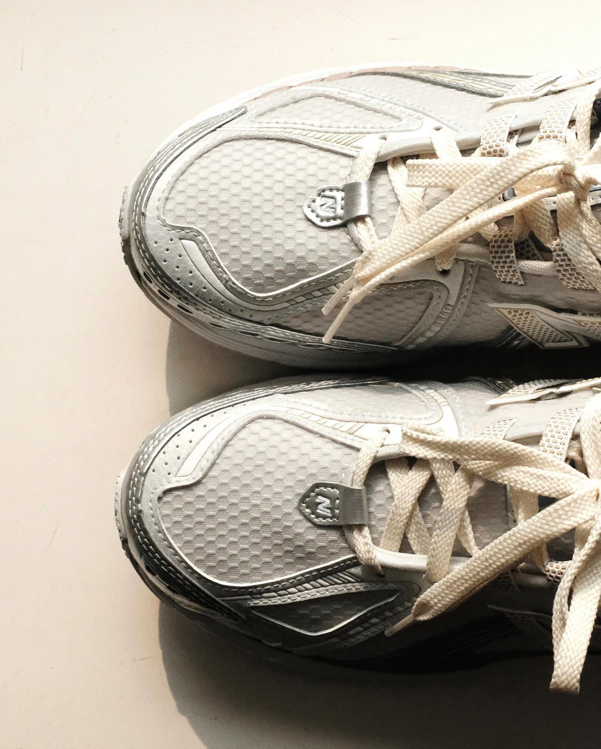 鞋面由网眼织物以及皮革包裹,非常契合当下流行的复古气质。