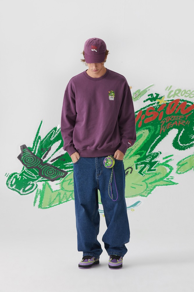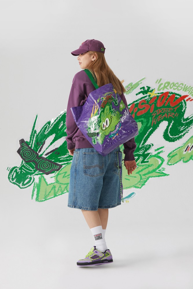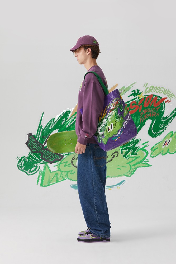后背图案以刺绣工艺呈现,前胸则融入 VISION STREET WEAR Logo,趣味十足。