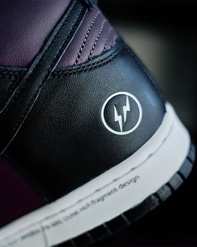 黑紫撞色低调内敛,后跟白色热压「闪电」Logo 进一步凸显藤原浩的联名身份。