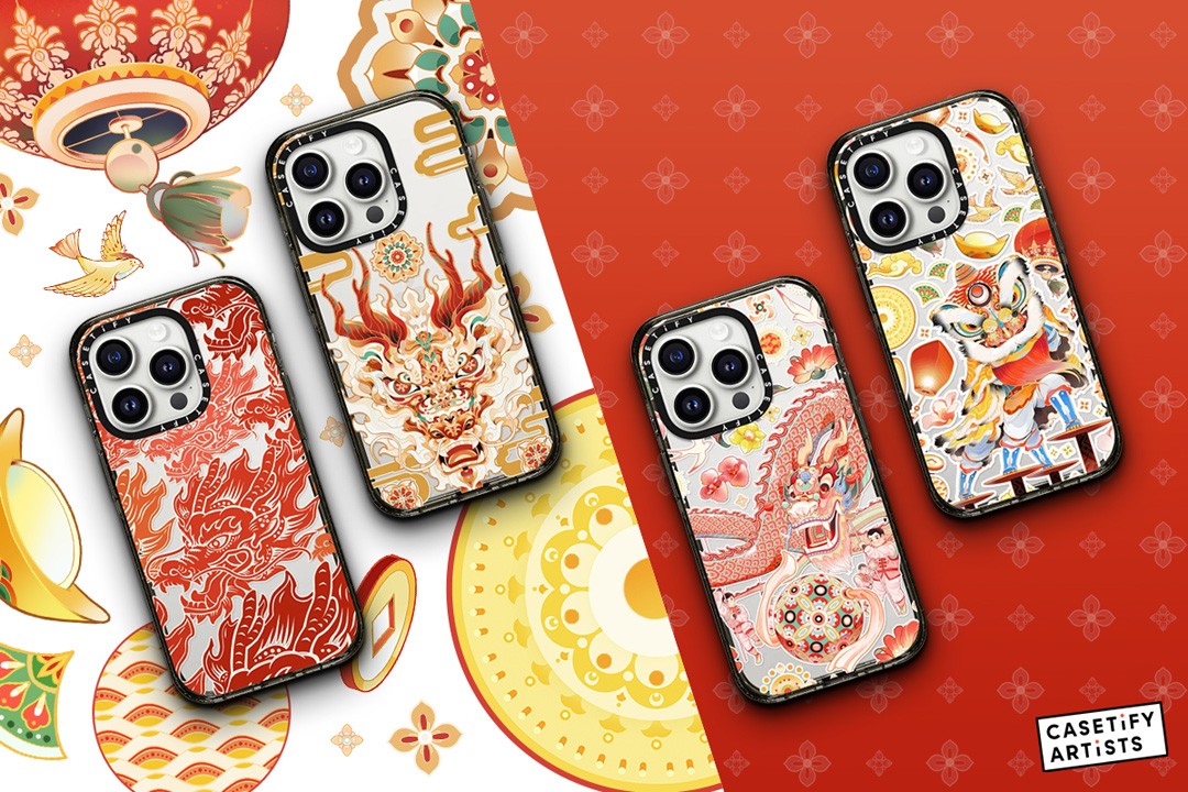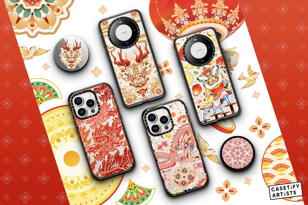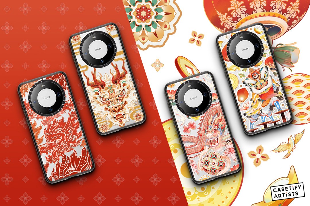 首先是 XuAn x CASETiFY 艺术家合作系列,以 “龙年喜迎新春” 为主题,将中式纹理图案、舞狮舞龙和孔明灯、元宝、铜钱等传统元素巧妙融合,带来令人眼前一亮的款式。