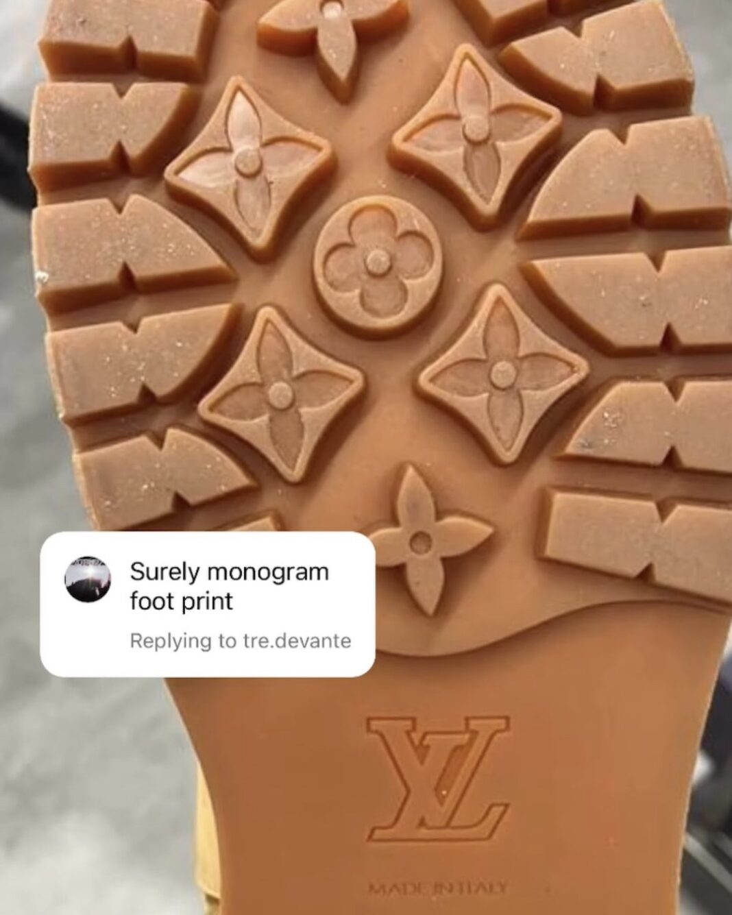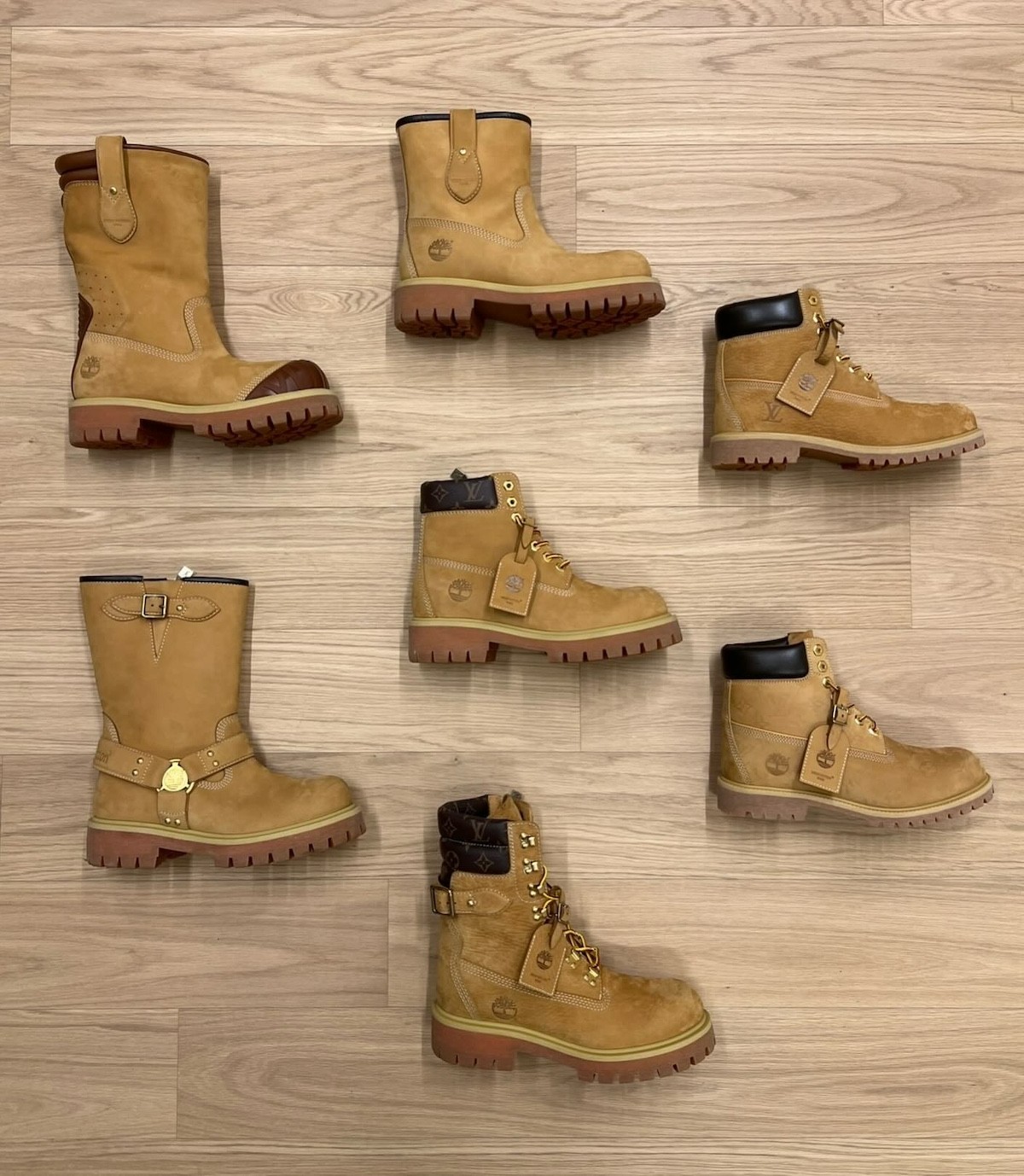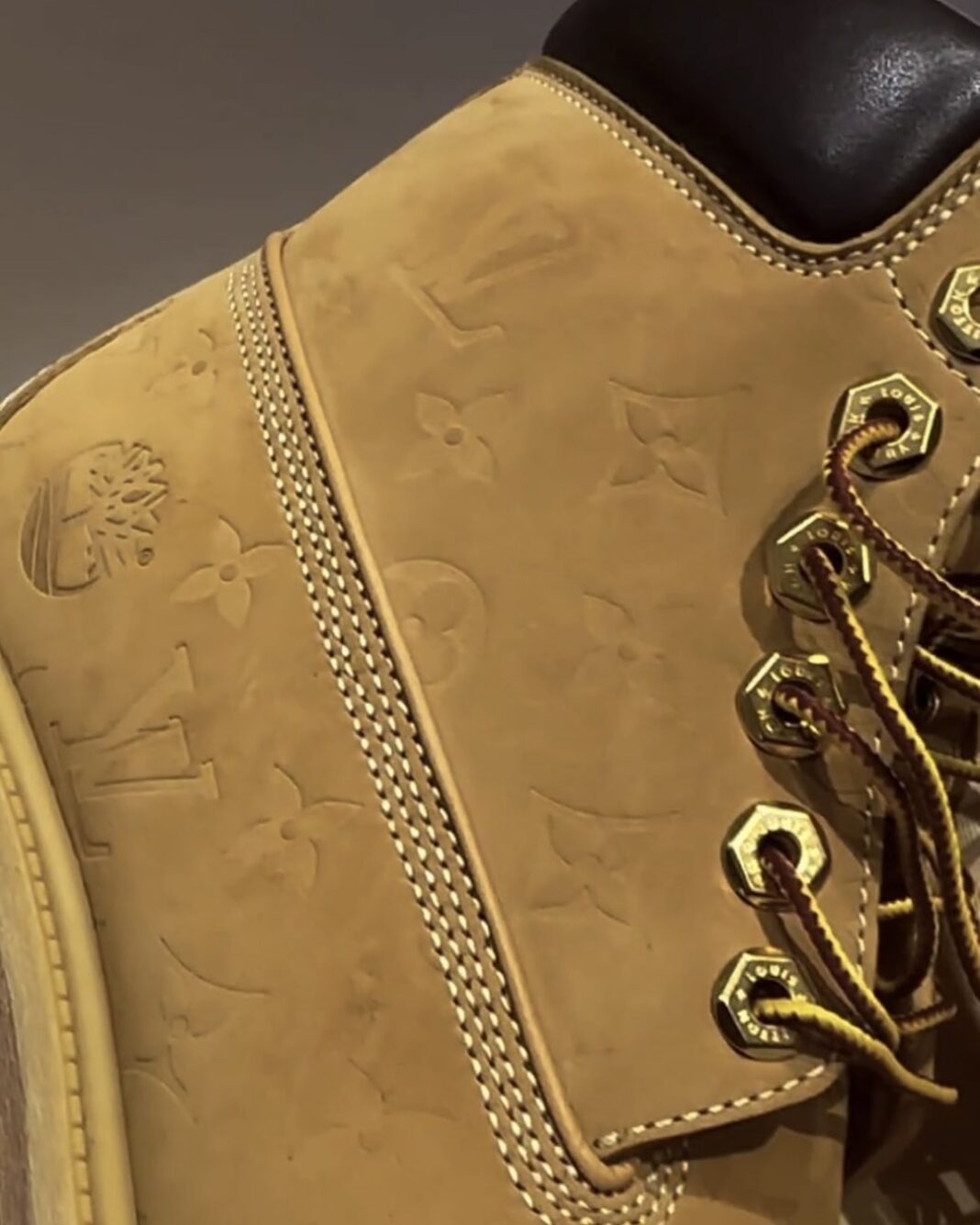 鞋底纹路是 LV 的经典老花图案,把 Timberland 大黄靴改造出前所未有的奢华感。