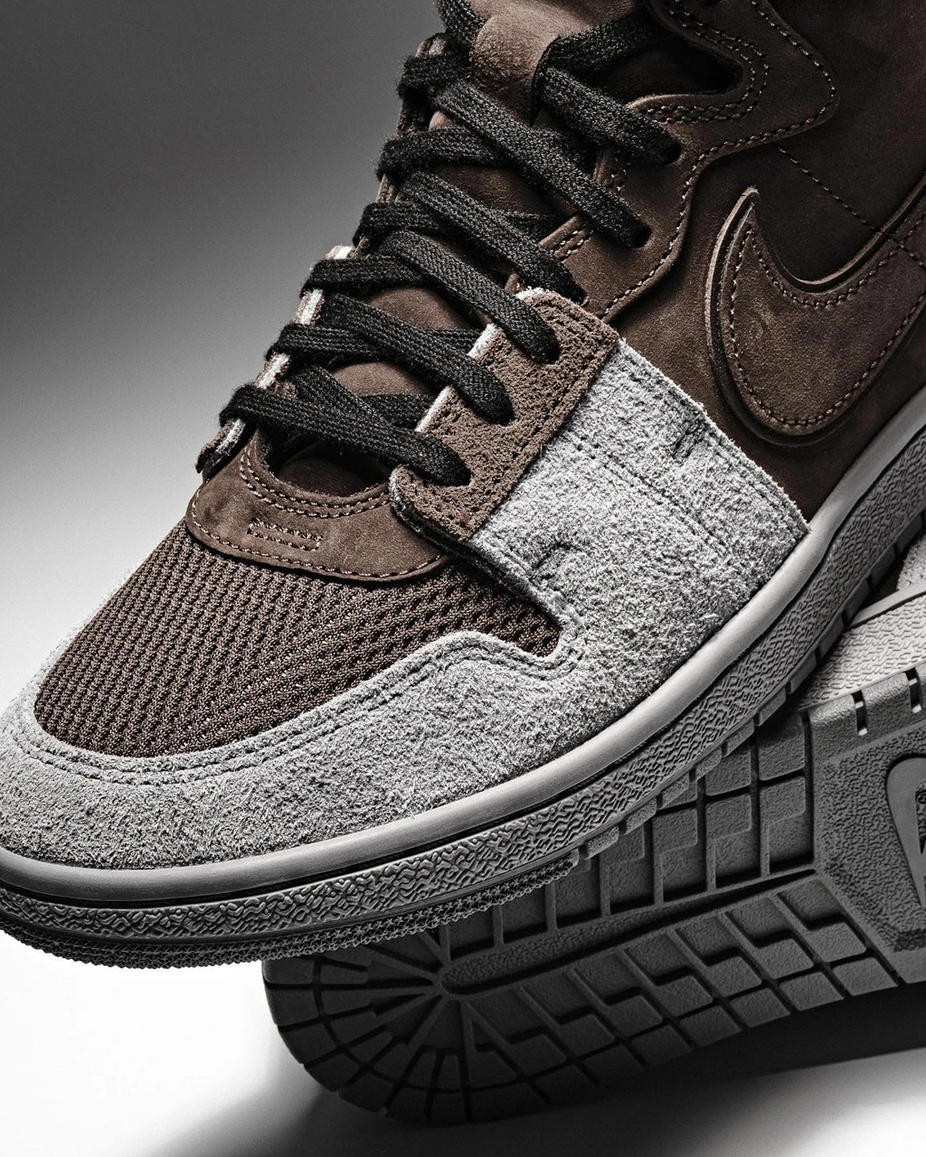 其中鞋面网布代表复古篮球背心的材料,麂皮有类似磨损的篮球表面,无处不彰显充满古早味道的篮球元素。