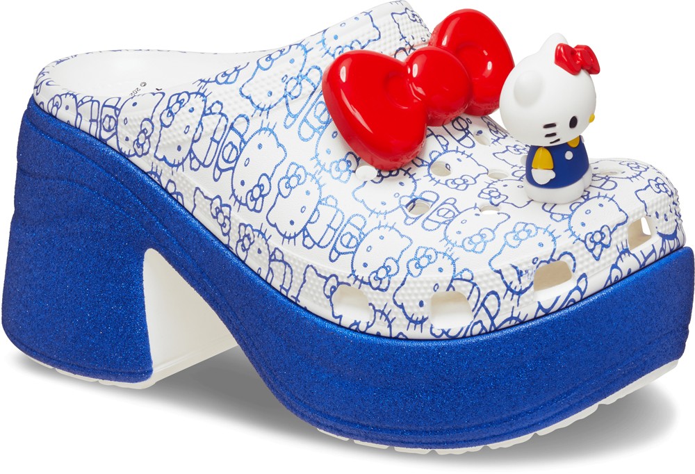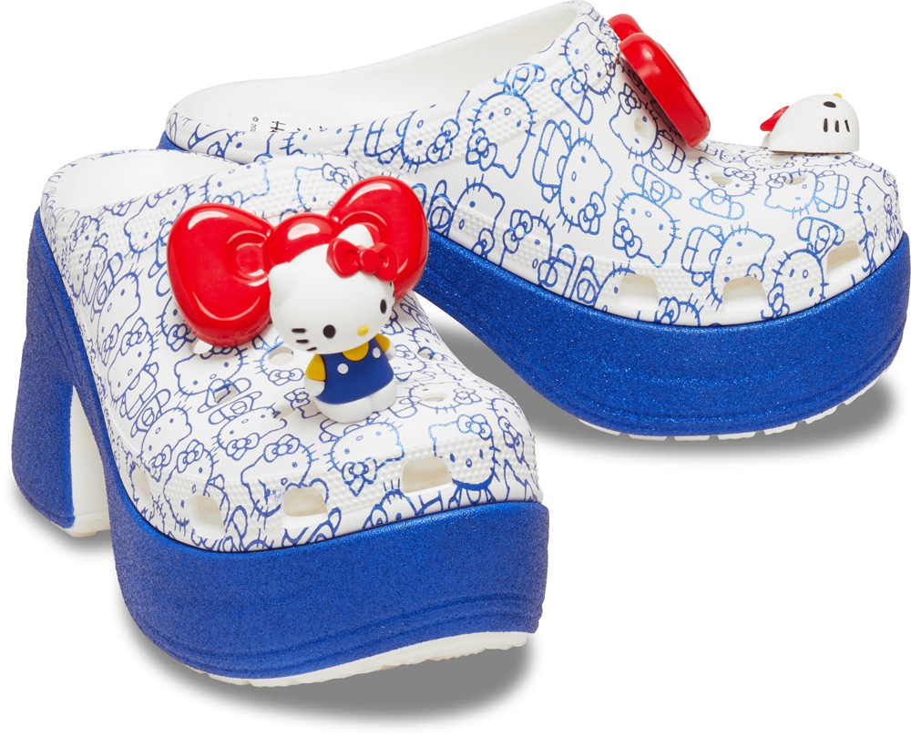 人鱼鞋型则是在经典克骆格的基础上,以高跟设计展现女性之美,特别搭配立体 Hello Kitty 智必星,更添 Hello Kitty 可爱氛围。