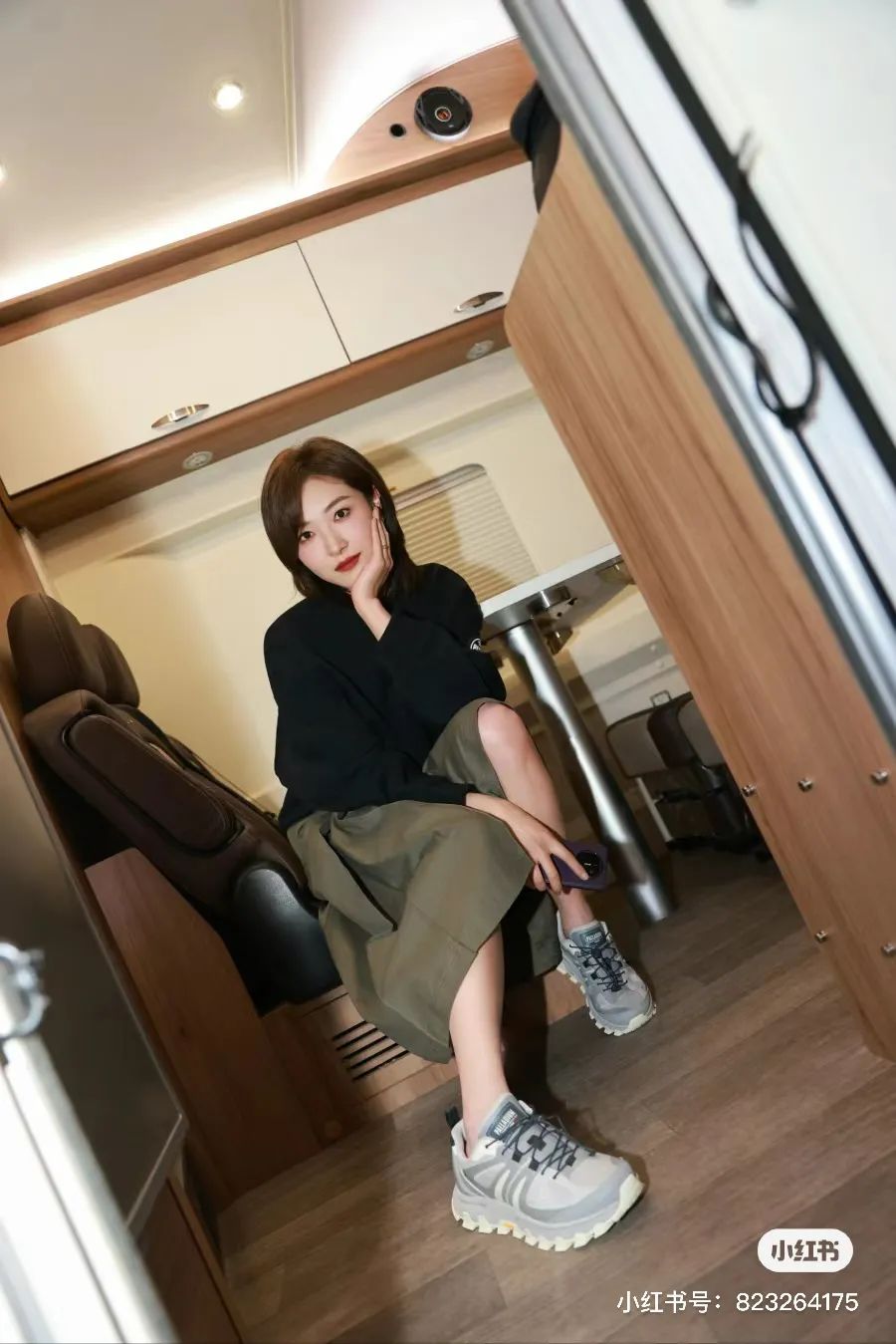 比如演员万茜,搭配低调的黑色长袖以及橄榄绿长裙,完全可以作为女生日常工作通勤的穿搭模板,干净利落又舒适。