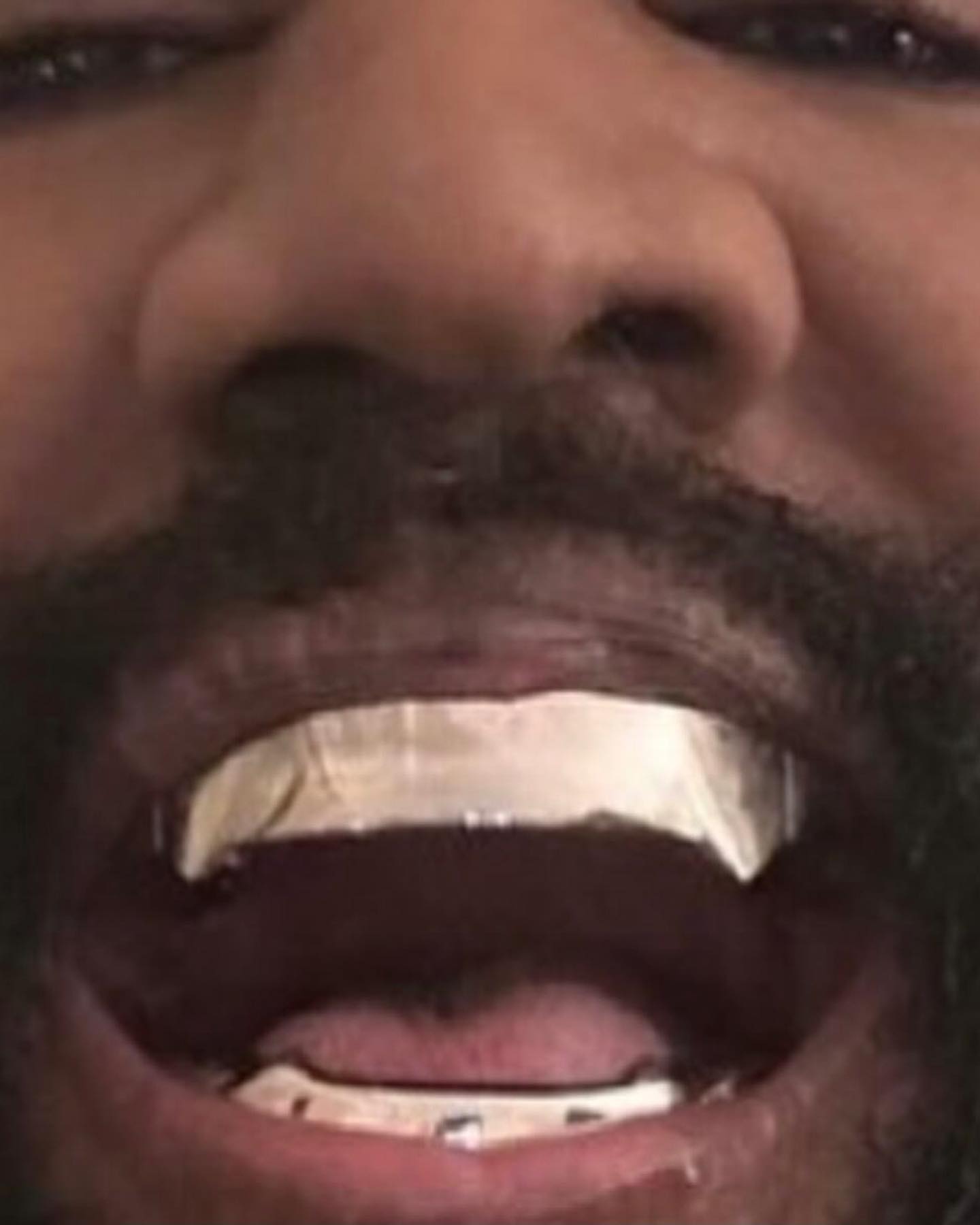 后来发现事实并非如此,这道反光其实是侃爷口中「钛合金假牙」的反光。
