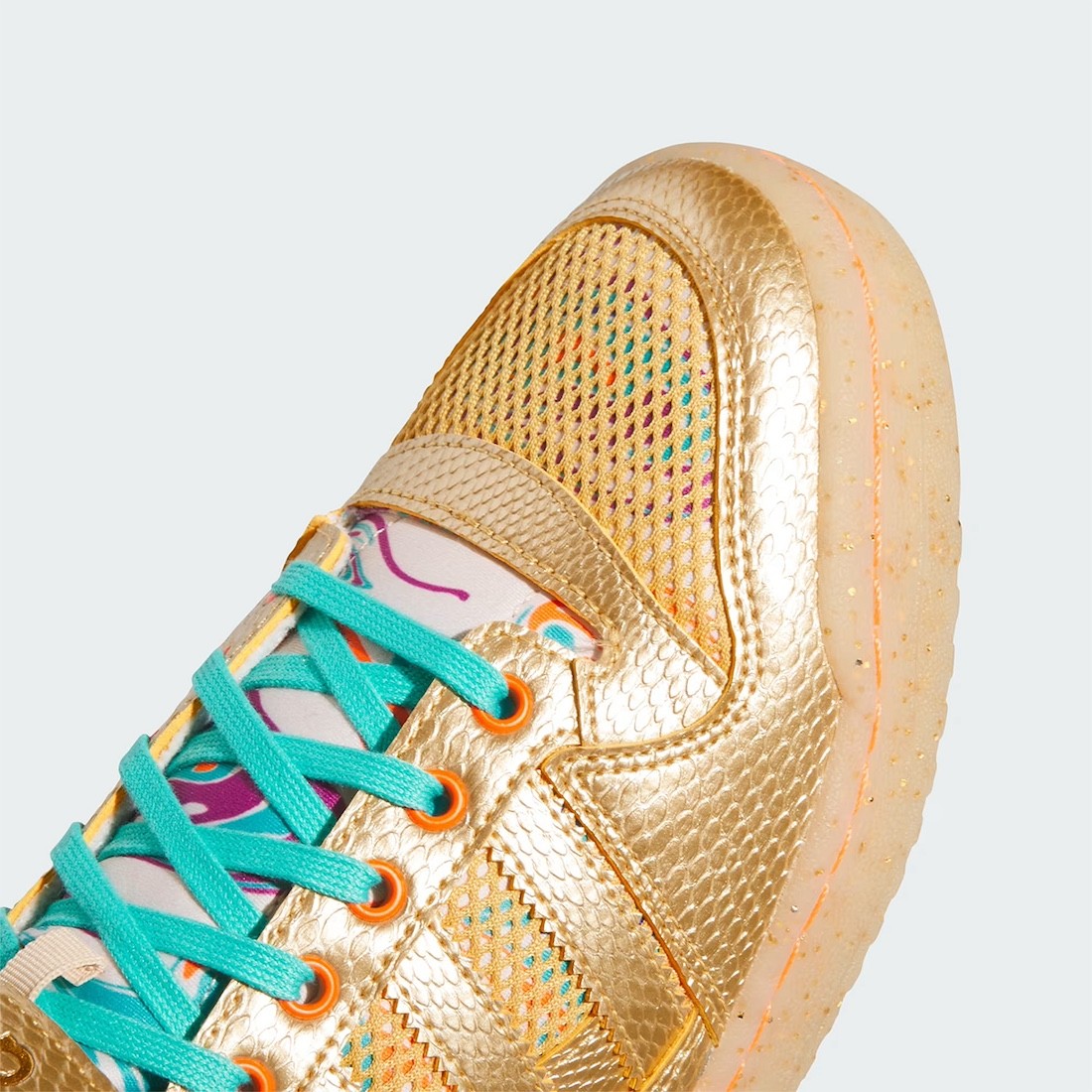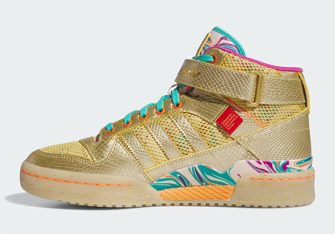 近日,一款全新配色的 adidas Forum Mid 正式曝光。 整体采用大面积金色蛇纹设计,多巴胺配色点缀,十分吸睛。 鞋舌处采用粉橙绿三色点缀,并同样带有蛇纹设计。 鞋面采用网眼布和皮革材质打造,带来不俗质感。 最后橡胶外底收尾,完善整双鞋设计。 据悉,全新 adidas Forum Mid “Carnival” 将于 2 月 1 日登场。 adidas Forum Mid “Carnival” 货号:ID8615 发售日期:2 月 1 日 发售价格:$160 美元